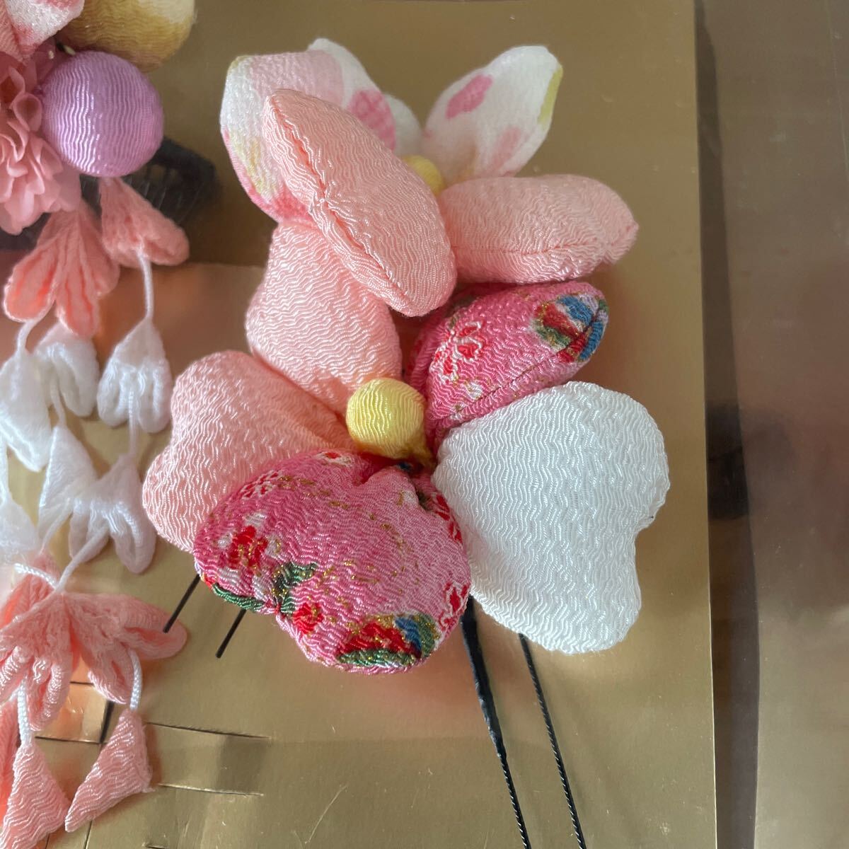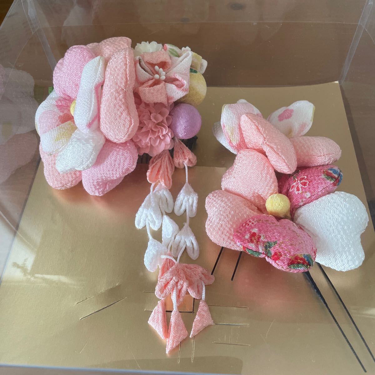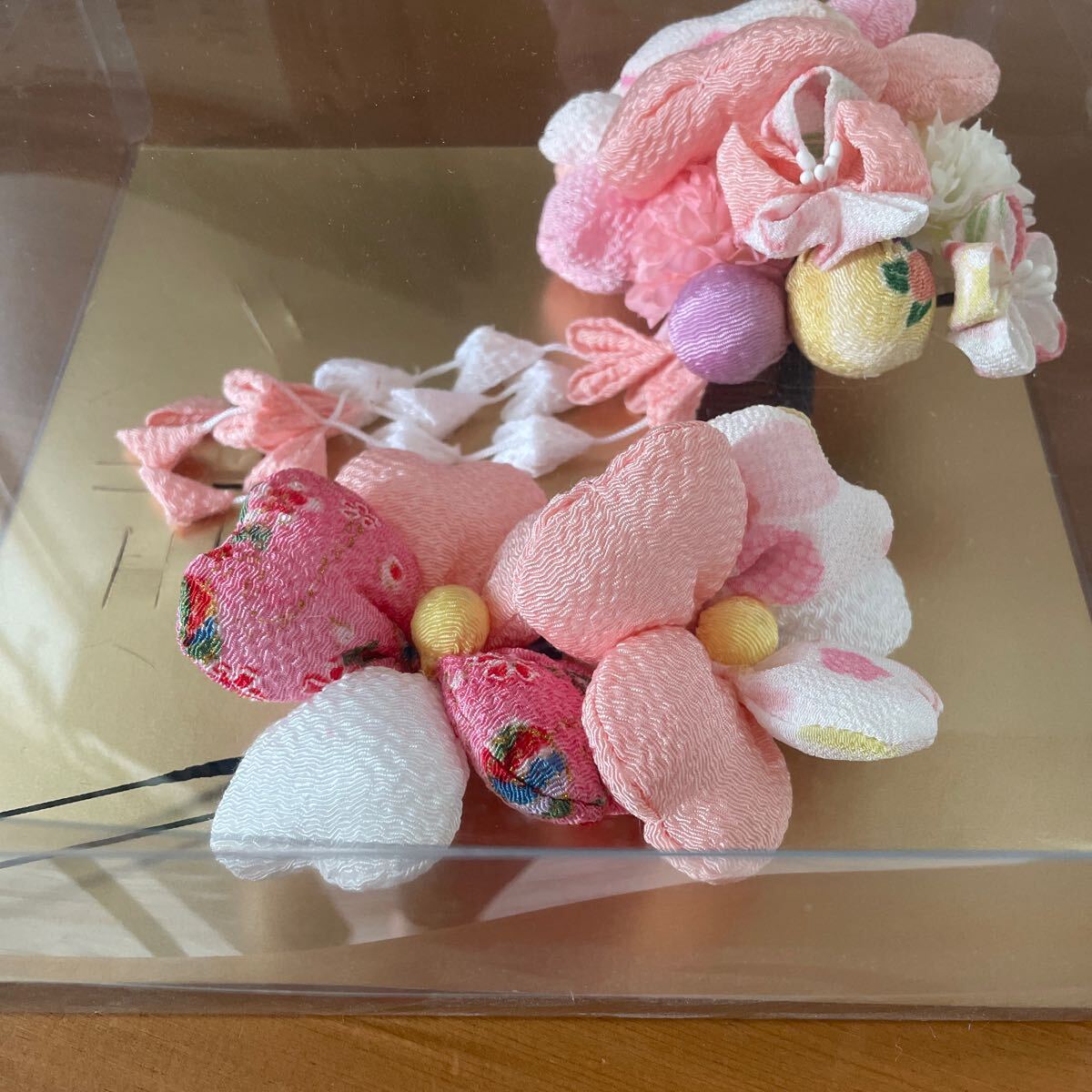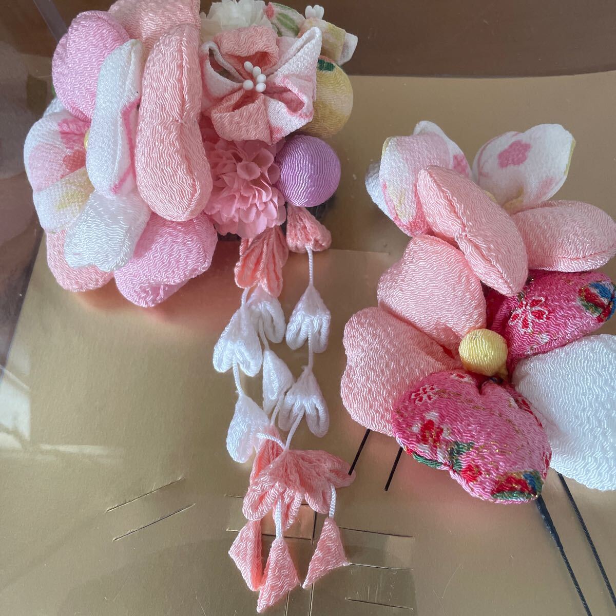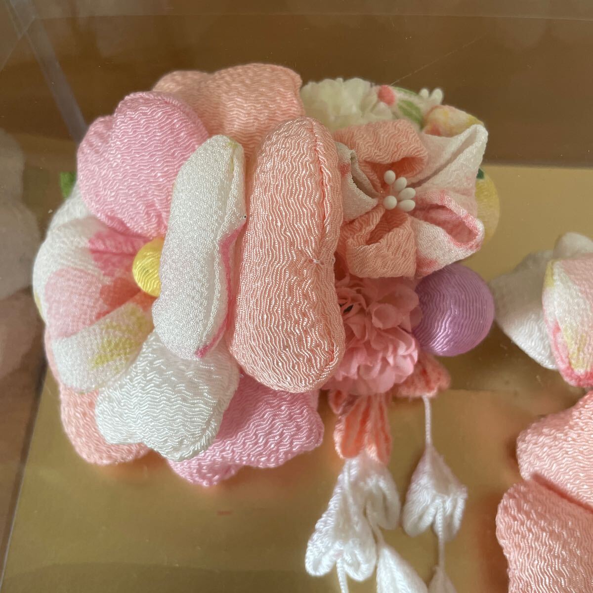 髪飾り。縮緬。つまみ細工。成人式。七五三。ベビーピンク。