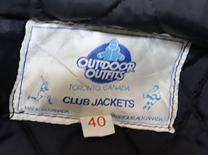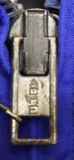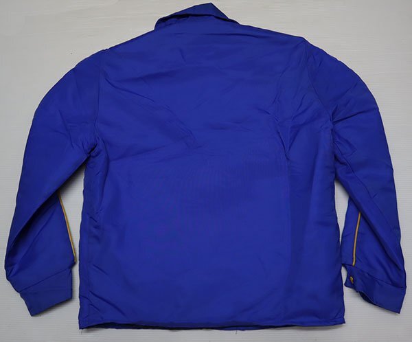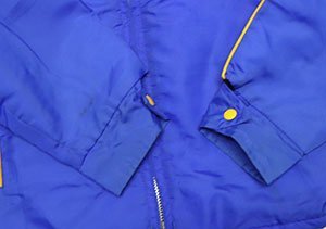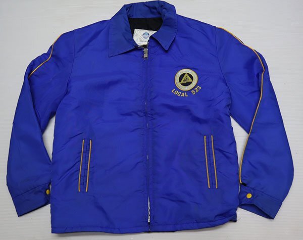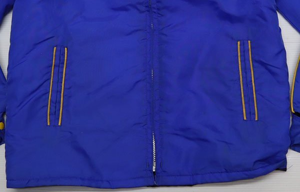 アメリカ買い付けの80-90年代頃のカナダ製で内外共ナイロンの中綿入りの紺系x黄色系ラインのACME製ZIPです。