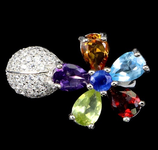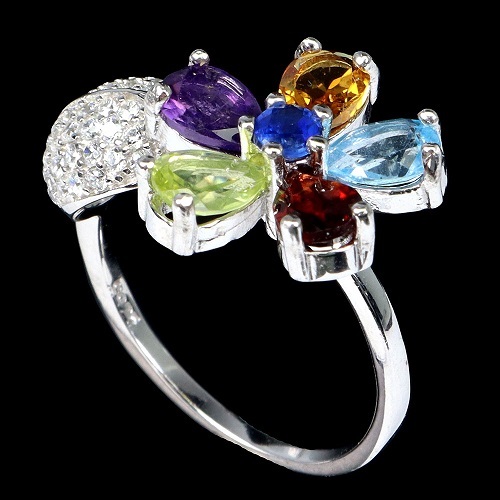 ブルーのトパーズ、オレンジのシトリンをちりばめた