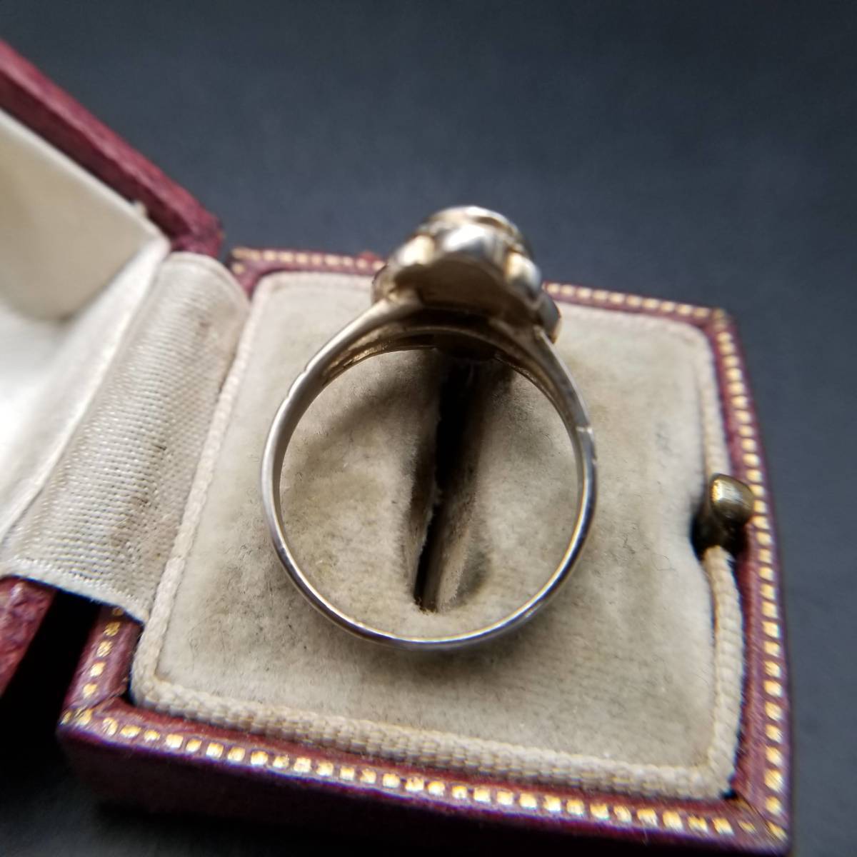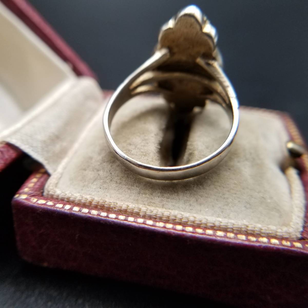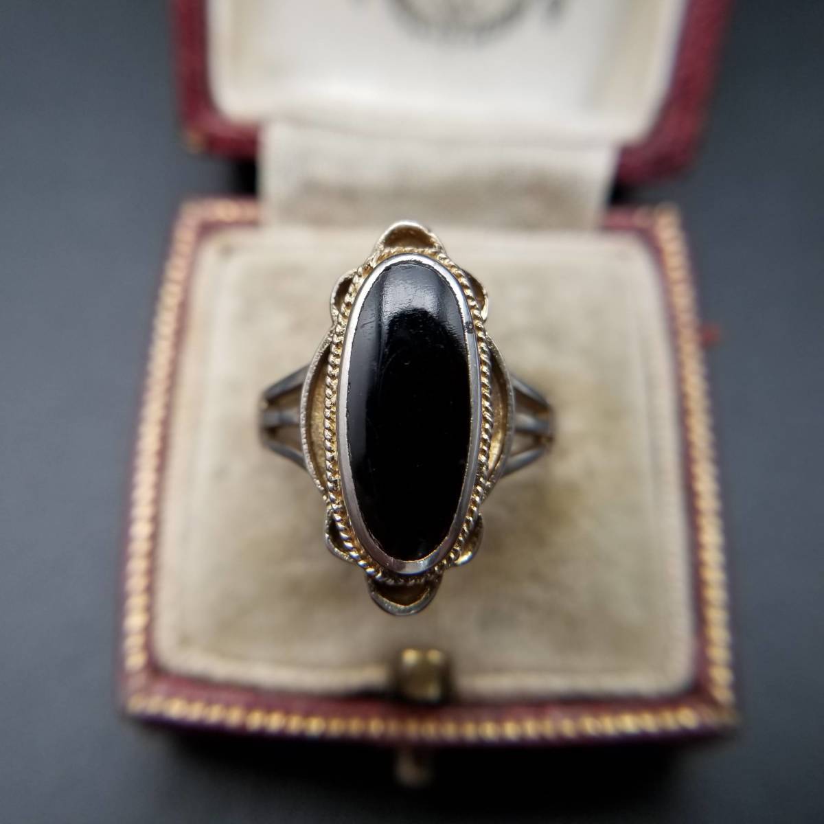 オニキス ロングオーバル ケーブルリム ヴィンテージ フラワー リング シルバープレート 指輪 サウスウェスタンスタイル 大きめサイズ