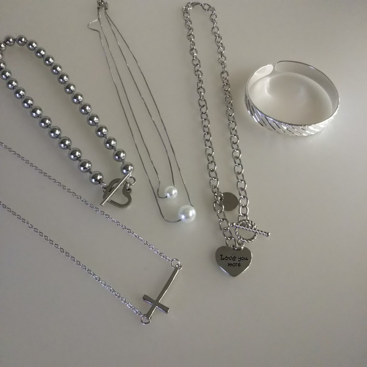 匿名/ゆうパケットmini送込 【 5点set 未使用 】 シルバー色 ネックレス バングル チョーカー マンテル金具
