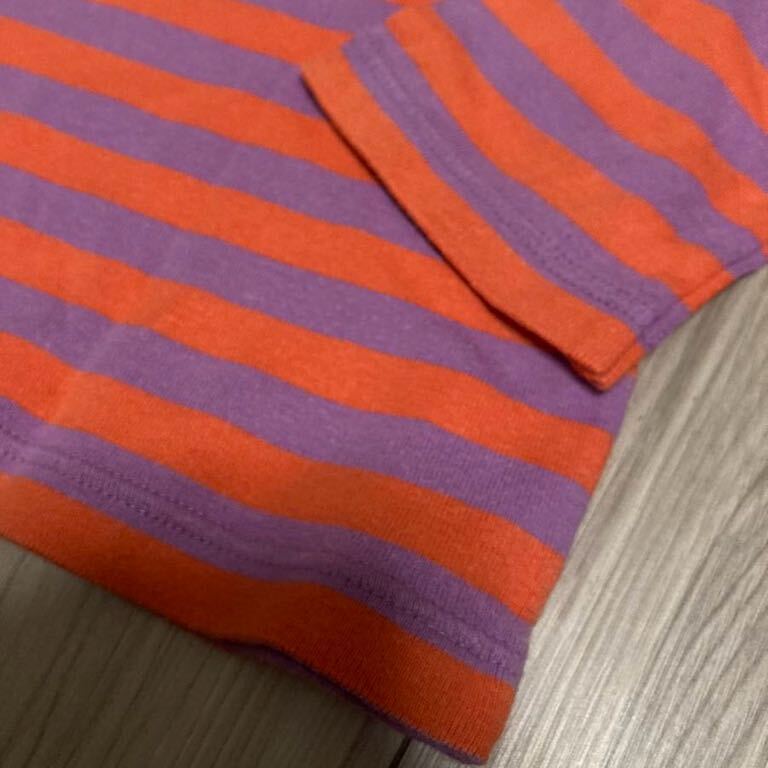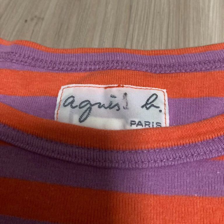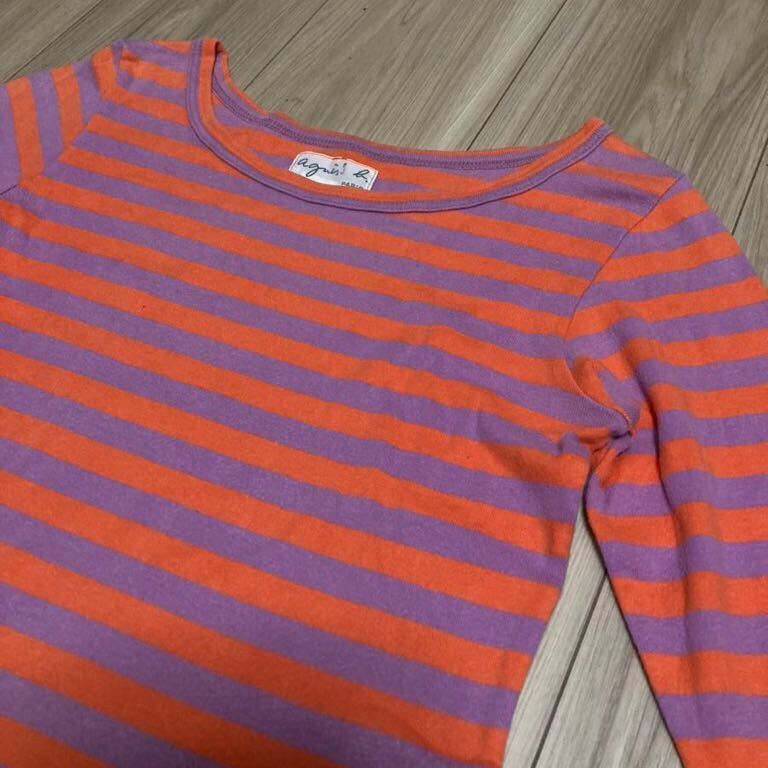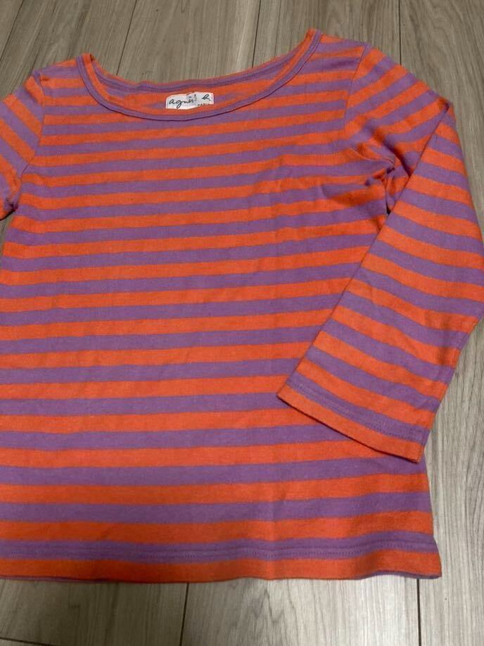 色柄デザインがオシャレでカワイイお馴染みアニエス・ベーのピンク×パープル7分袖ボーダーコットンカットソーになります!