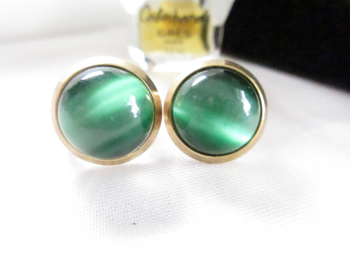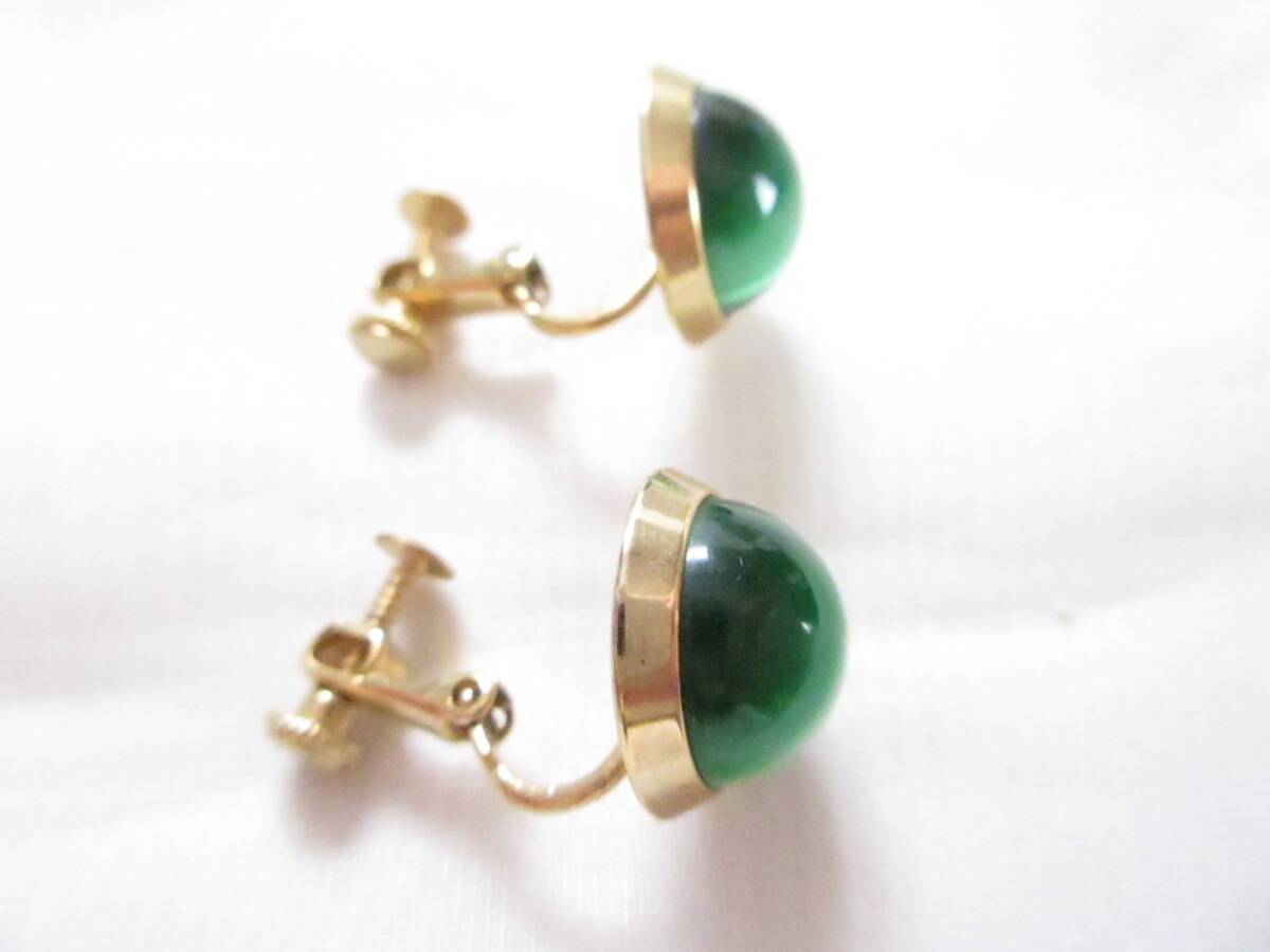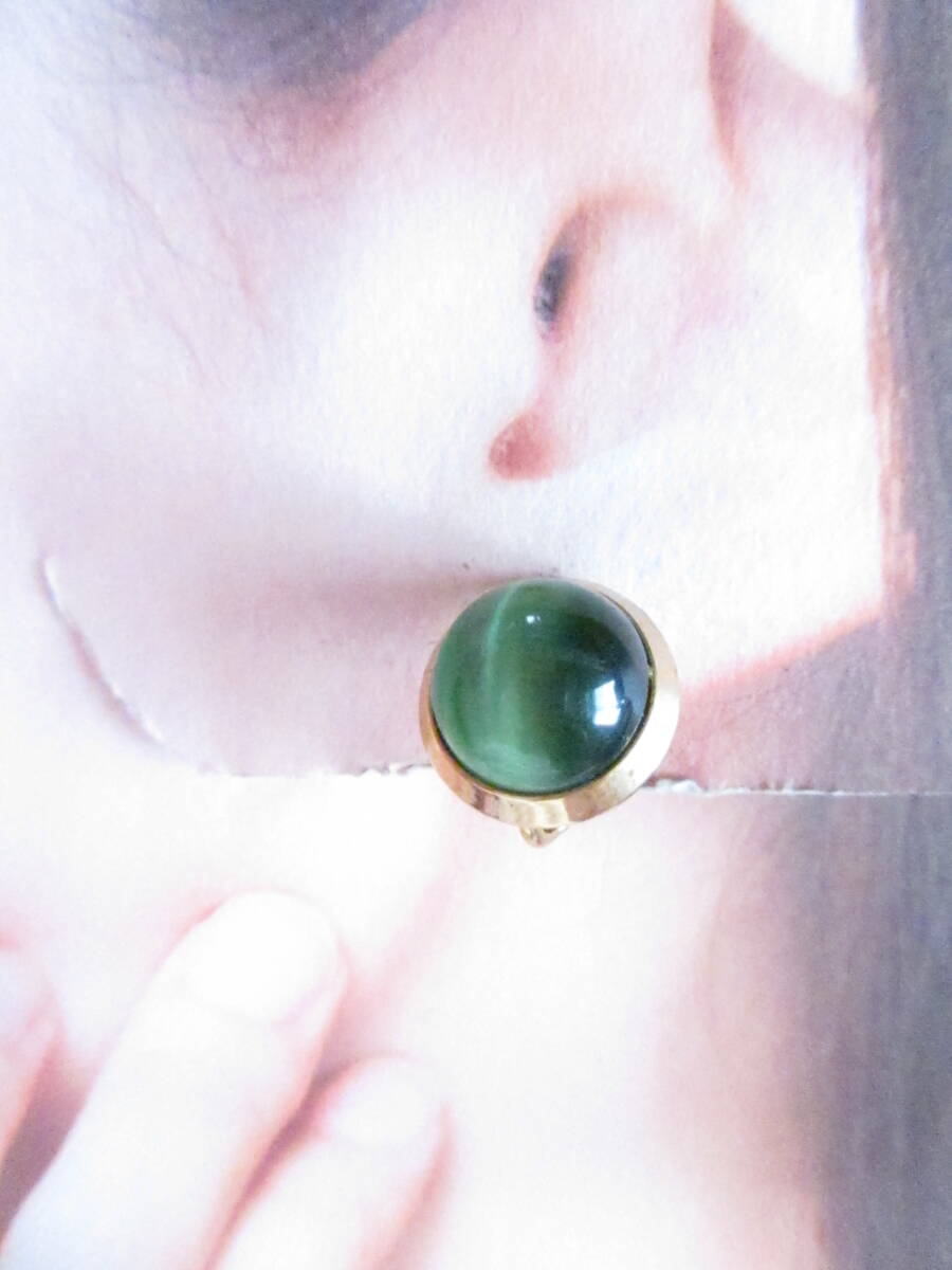 ♪ビンテージ/ヴィンテージ 美しいロイヤルグリーントーンのストーン調 素材不明 金色との2トーンがエレガントな印象のイヤリング