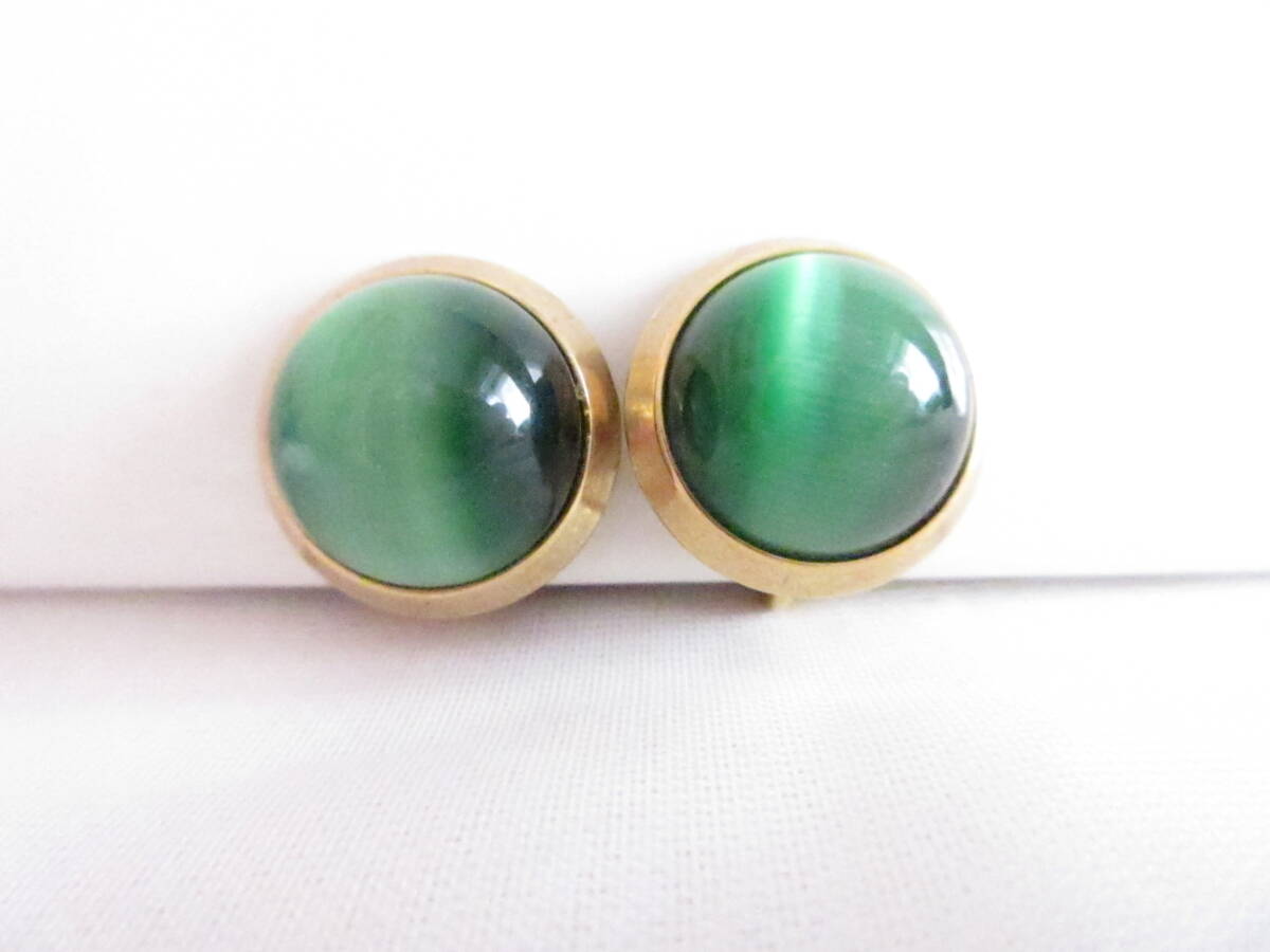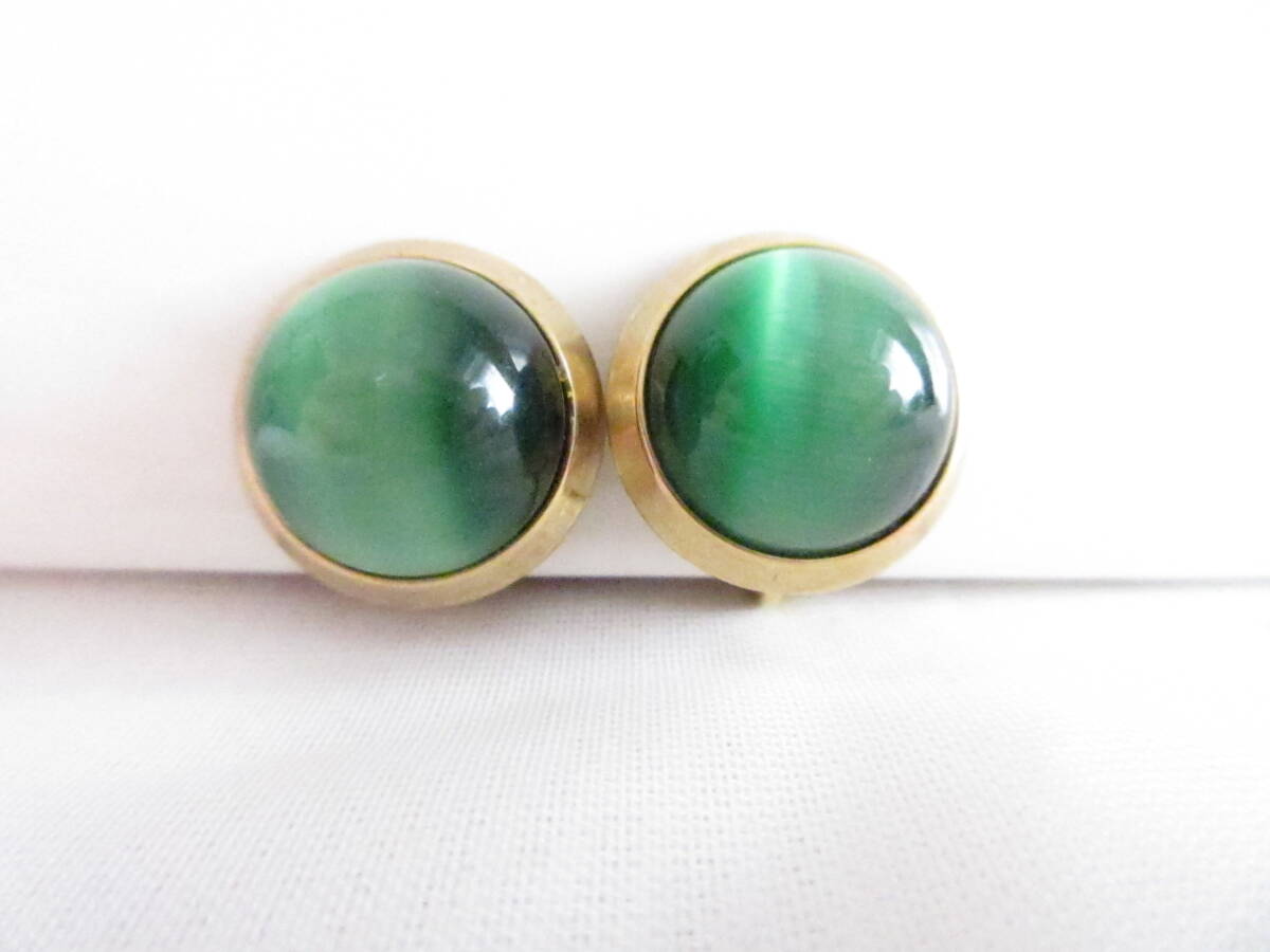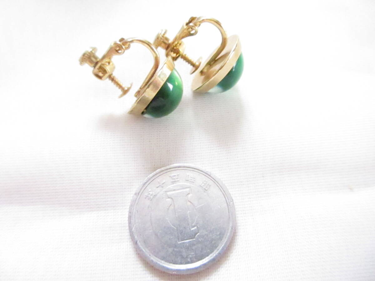 ♪ビンテージ/ヴィンテージ 美しいロイヤルグリーントーンのストーン調 素材不明 金色との2トーンがエレガントな印象のイヤリング