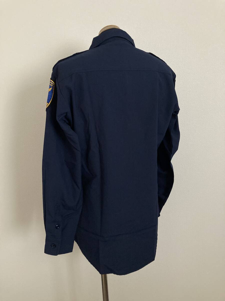 【HOUSTON】ポリスマンシャツ L相当 サンフランシスコ警察 両肩ワッペン 90s 制服風 長袖ボタンシャツ ネイビー ミリタリー
