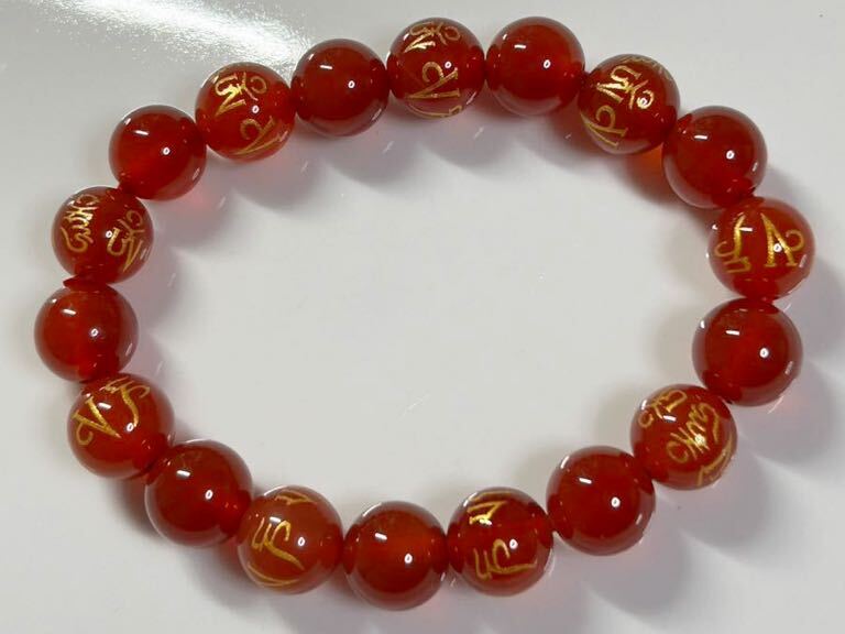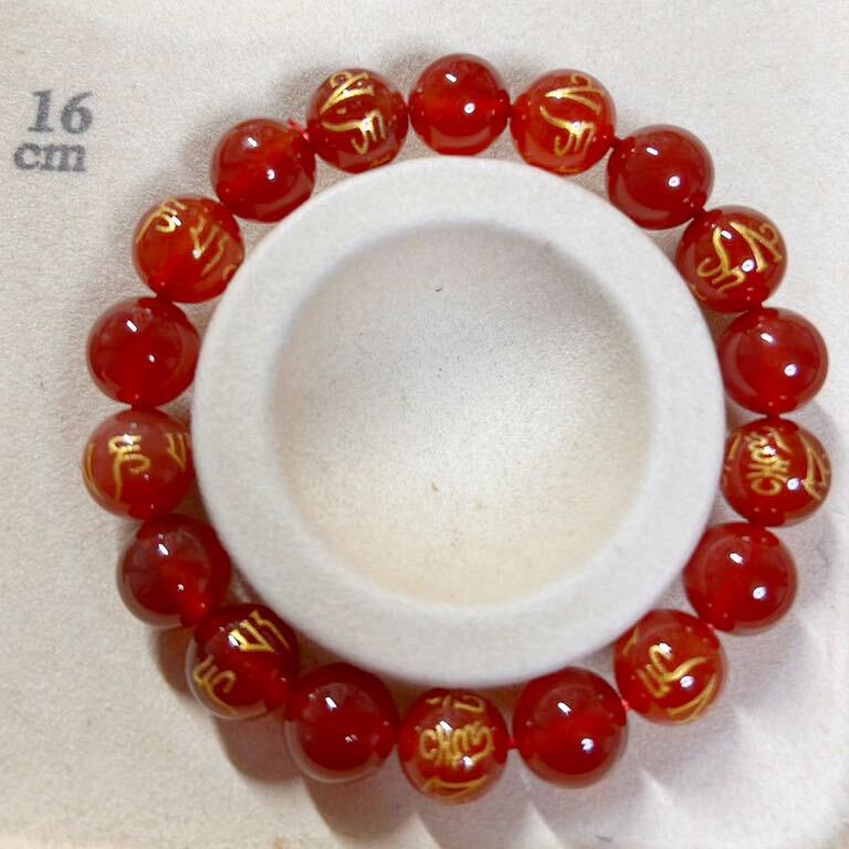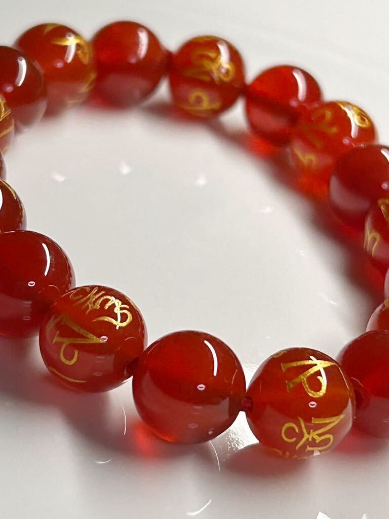 おすすめ!!天然石★赤瑪瑙 六字真言 ブレスレット★10mm 16cm お守り