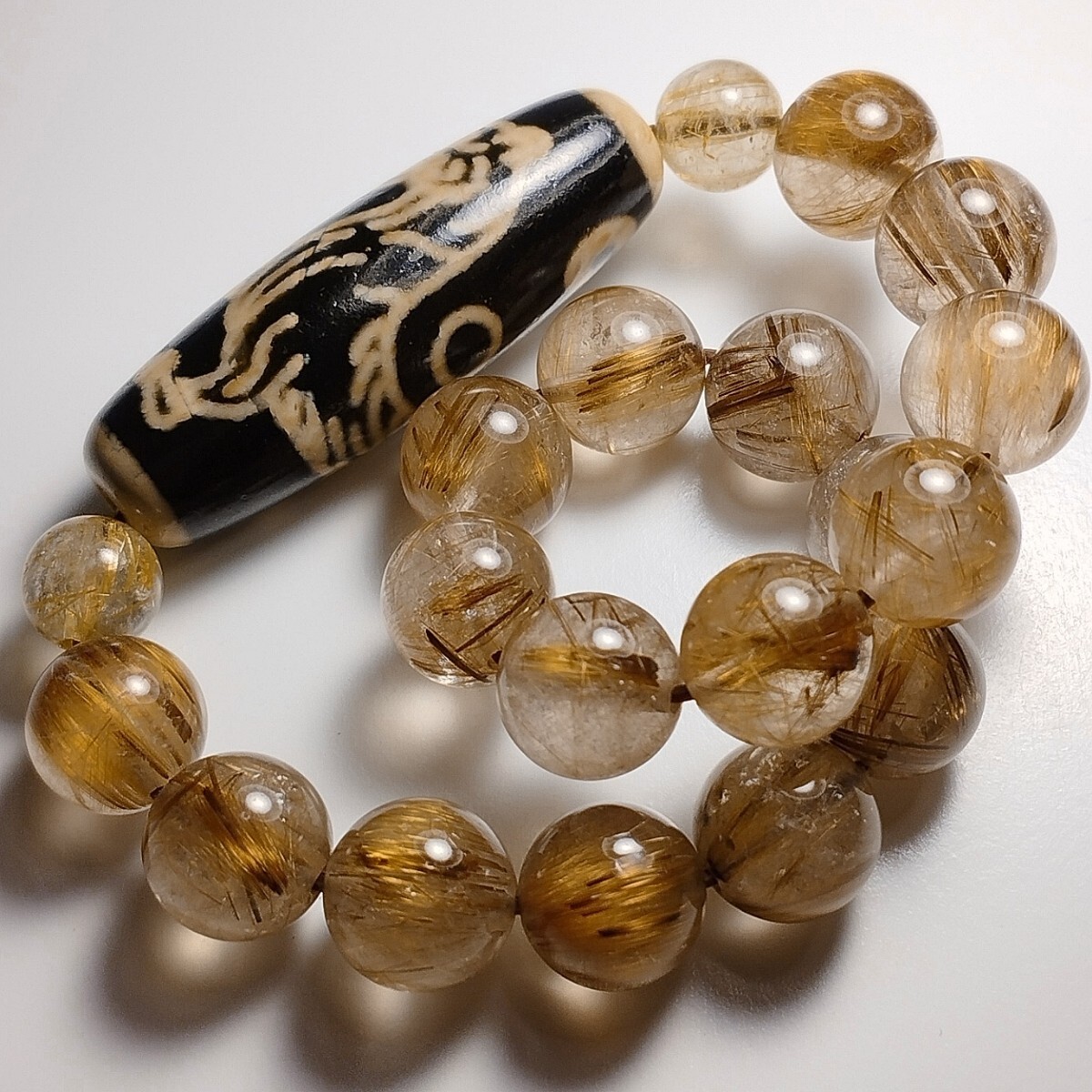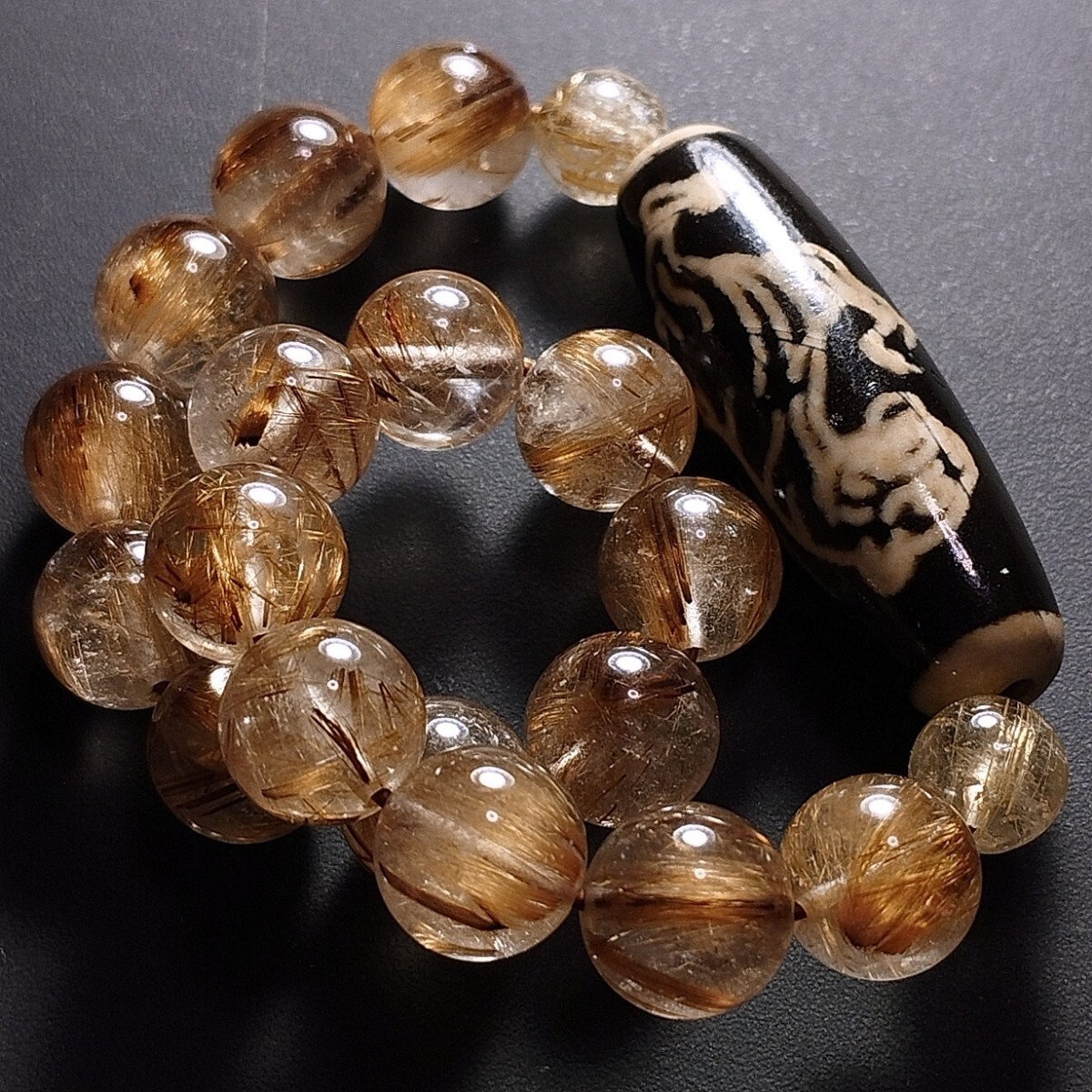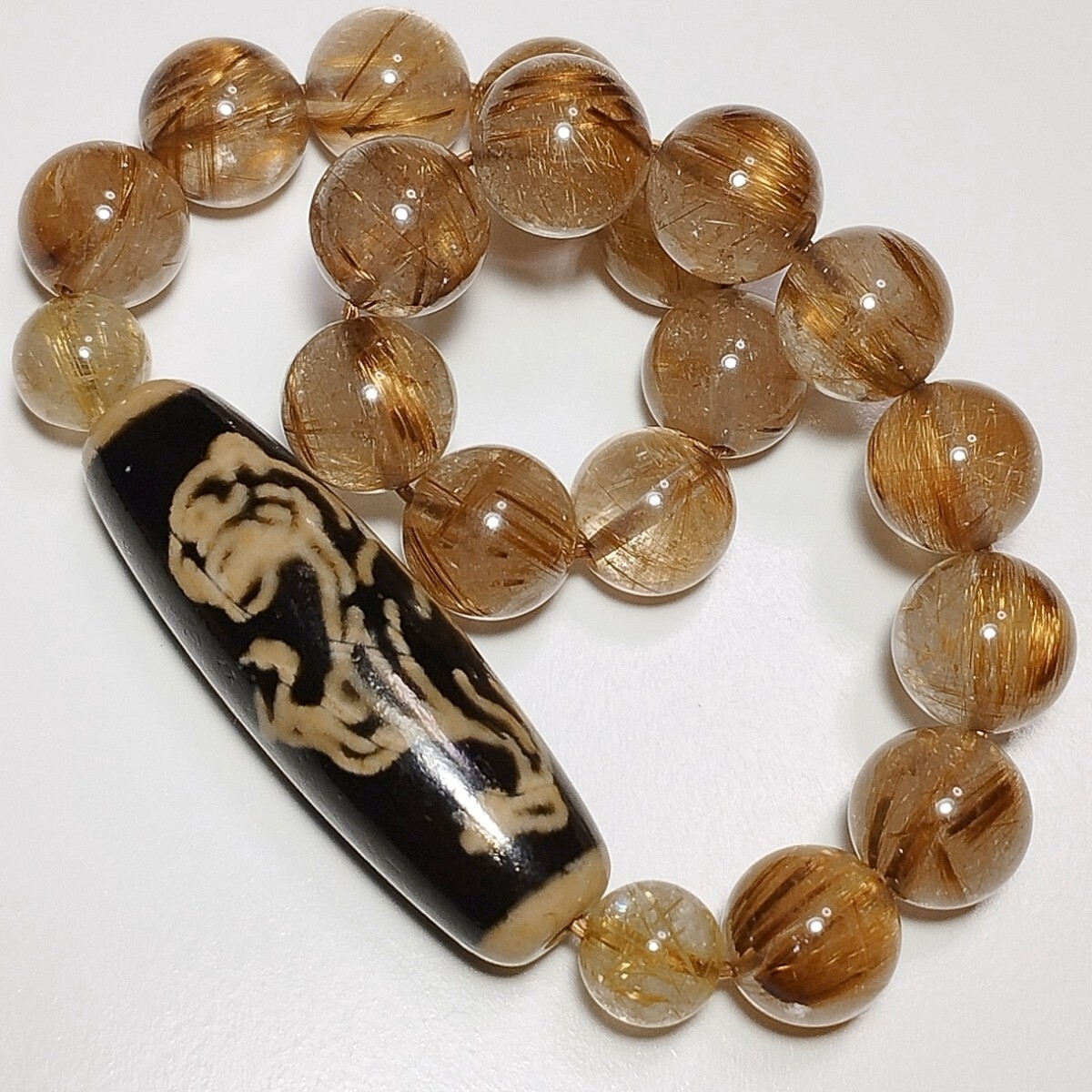 天珠のサイドは高品質なゴールドルチルクォーツです。