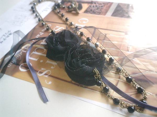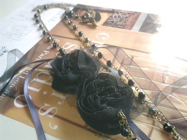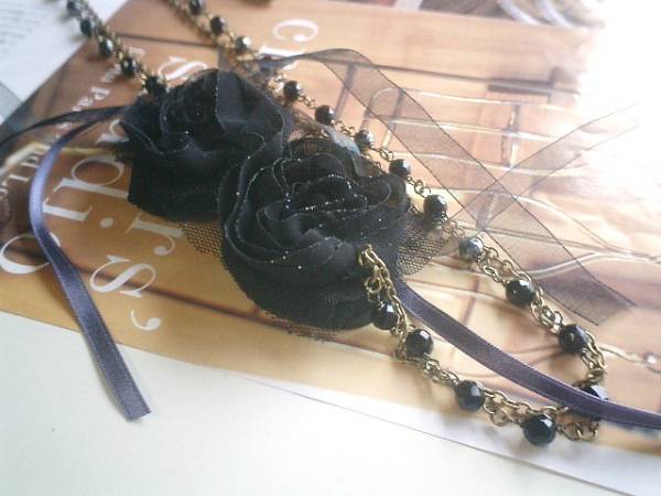 天使の時間・・シリーズです♪オニキスと薔薇と・・シックなオニキスのネックレスです♪黒のシフォンの薔薇やサテンリボンやダークグレーのヘマタイトを合わせてロマンチックな表情です♪6ミリのランダムカットのオニキスに6ミリのランダムカットのハマタイトと50ミリ位のシフォンの薔薇を合わせました♪長さは88センチ+アジャスター17センチで最長105センチ位です♪♪お揃いのブレスレットも出品しています♪シンプルで飽きのこないいつまでも着けられるデザインを考えて作りました!ハンドメイドをご理解頂いてノークレーム、ノーリターンでお願いします