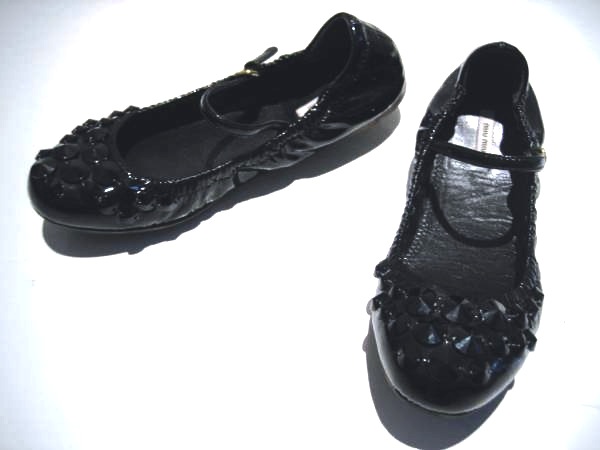 miumiu ミュウミュウ サイズ34 レザーフラットパンプス ビジューブラック 約22.5cm程