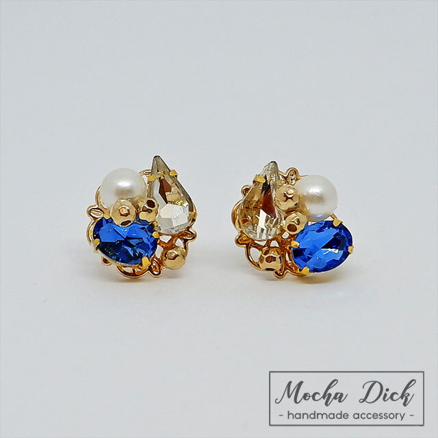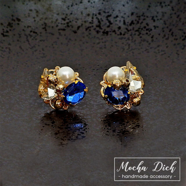 カッティングガラスのビジューとアクリルパールを使用したピアスです。