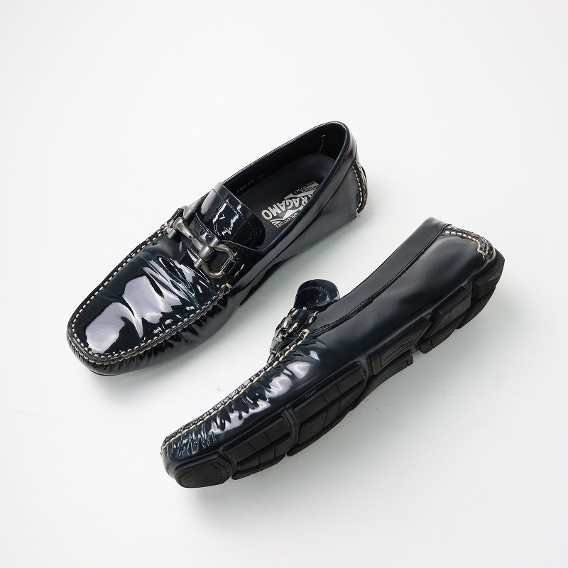 サルヴァトーレ フェラガモ Salvatore Ferragamo PARIGI ビット付ドライビングシューズ 7EE/コバルトパテントカーフ【2400030073773】