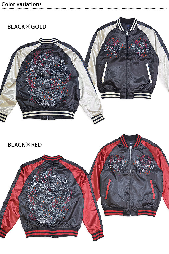 刺繍に定評のある古舗ブランド、華鳥風月の姉妹ブランド「朧」から「龍サテンスカジャン(9043815)」のご紹介です! カジュアルなサテン生地を使用し、気軽にお楽しみ頂くことの出来るスカジャンを製作しました。 今回、モチーフの主役に採用されたのは、根強い人気を誇る【龍】柄。 カラーは選べる3色。それぞれのボディーカラーによって、雰囲気も少しずつ変わります。 1枚持っているだけでずっと使えるアイテムです。 | ||||||||||||||||||||