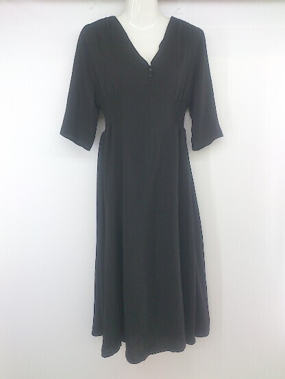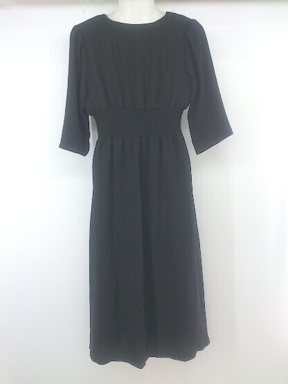 ◇ natural couture ナチュラルクチュール シャーリング 七分袖 膝下丈 ワンピース ブラック レディース P