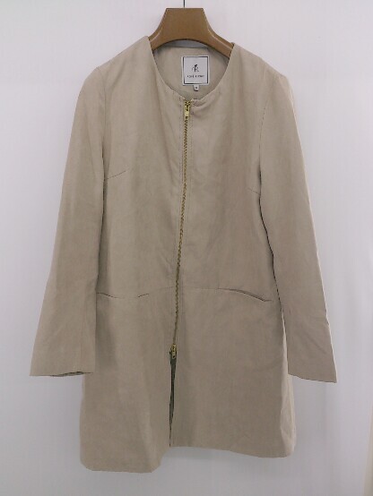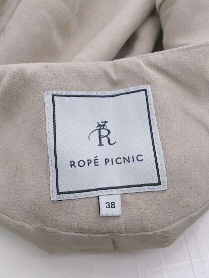 ◇ ROPE PICNIC シンプル 無地 スウェード調 ノーカラー 長袖 ジップアップ コート サイズ38 ベージュ系 レディース P