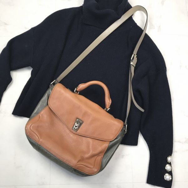 キャメルとグレージュのバイカラーが、ありそうでないお洒落な色の配色です♪