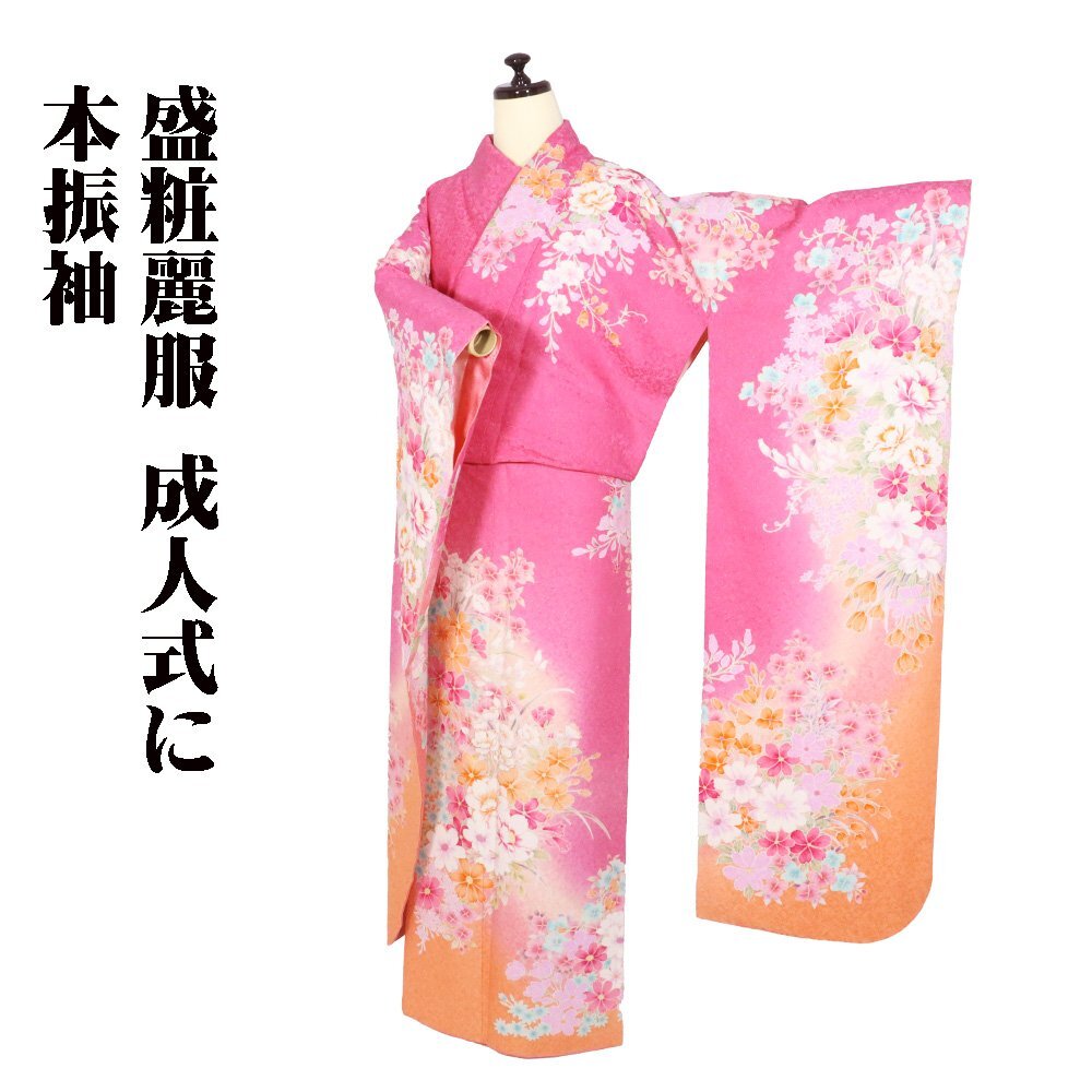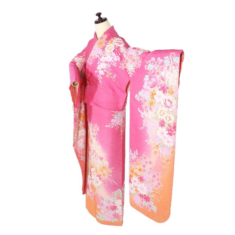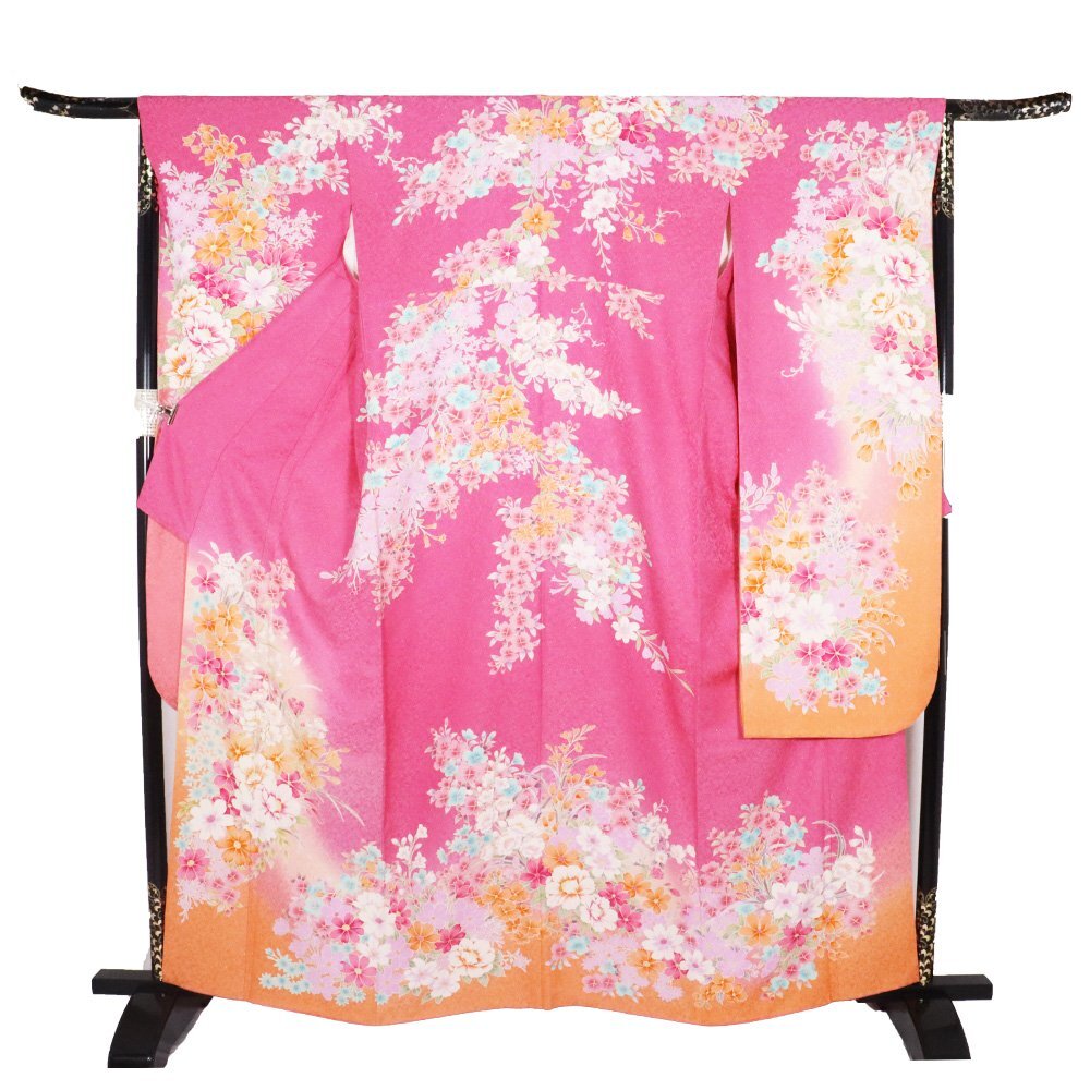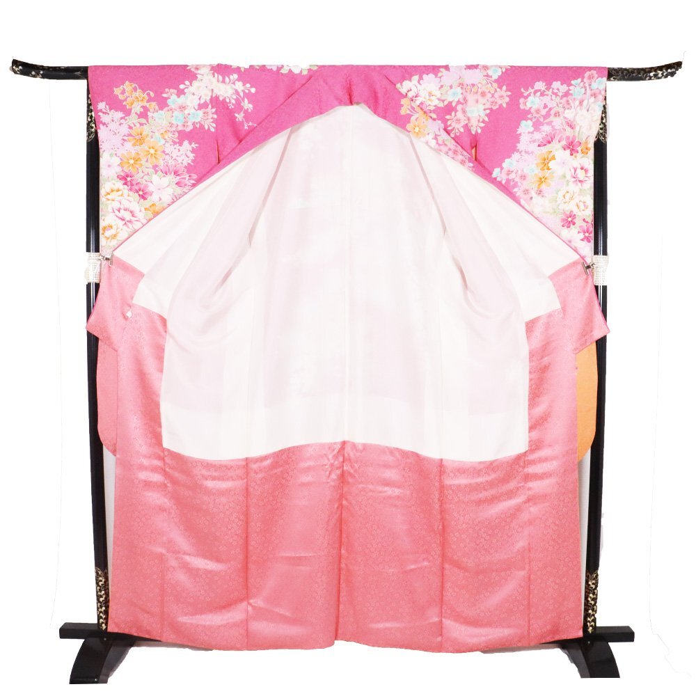 | 本振袖 袷 丹後縮緬 銀糸通し地 ローズピンク・ピンク・オレンジ・ライトグリーン・暈し・ 銀糸通し地 桜 168 広襟 | |