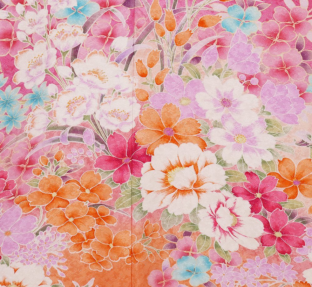 | 色・柄 | 本振袖 袷 丹後縮緬 銀糸通し地 ローズピンク・ピンク・オレンジ・ライトグリーン・暈し・ 銀糸通し地 桜 (写真では上手く色が出ない場合があります。ご了承下さい) 写真の枚数が多いので一度パソコンでご覧ください。 |