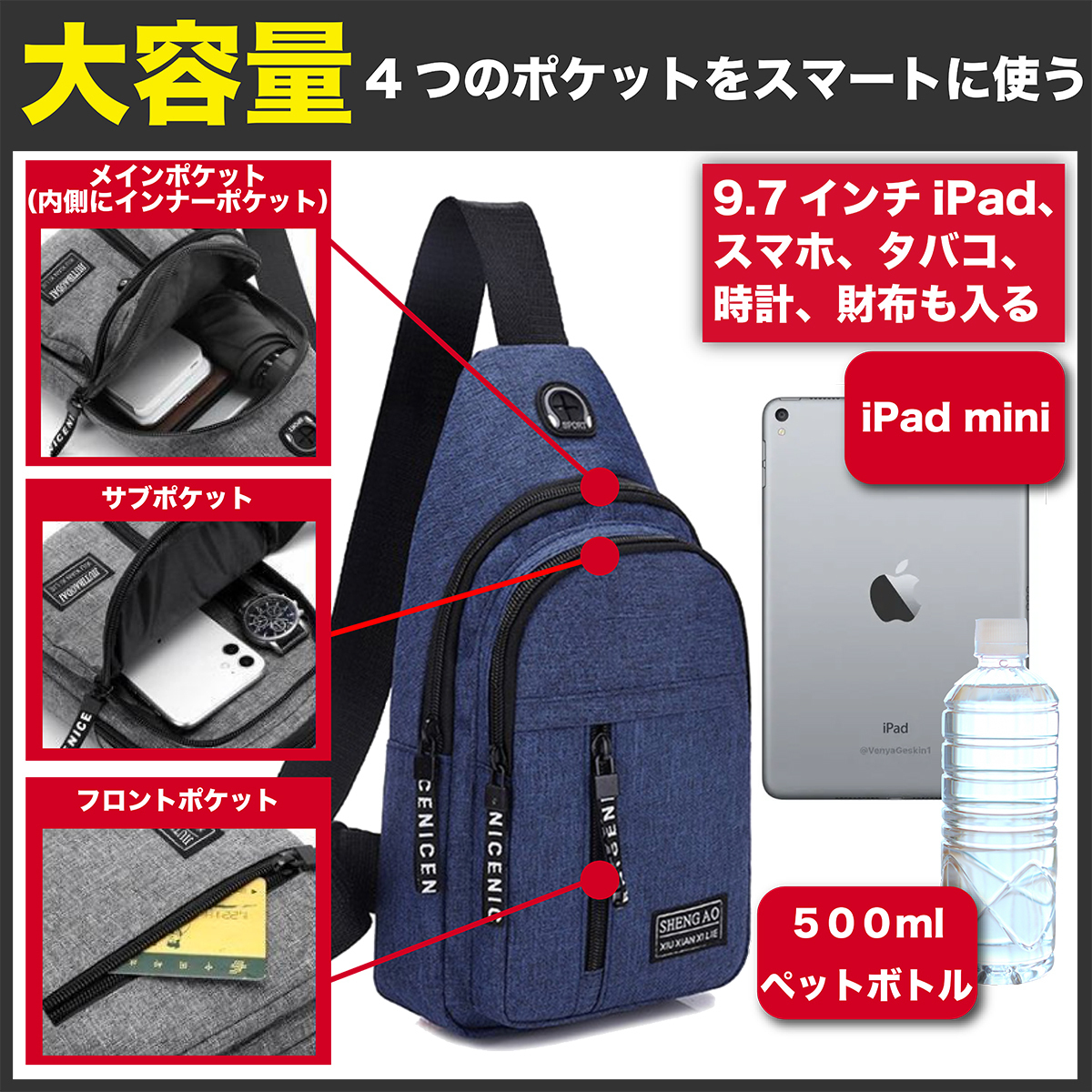 ボディバッグ メンズ 防水 ワンショルダー 斜めがけ 軽量撥水