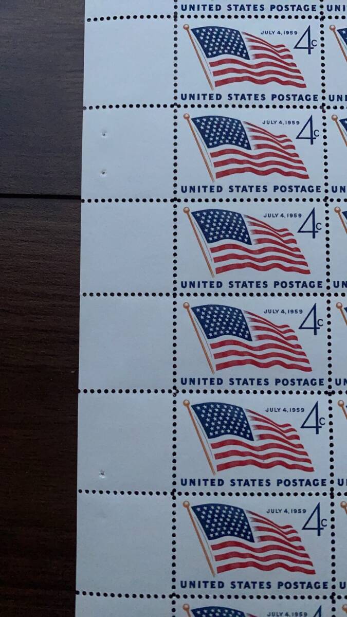 ★レア★貴重★美品★未使用品★ ヴィンテージ USスタンプ アメリカ合衆国国旗切手 1シート(50枚)1959年 アンティーク 切手収集