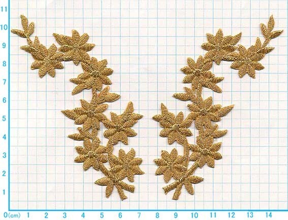 アイロンワッペン/刺繍/アップリケ/小連花A金糸ペア/ちょっと大きめ花柄/フラワー