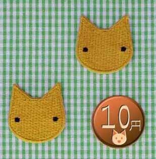 アイロンワッペン/刺繍/アップリケ/シンプルぷちにゃんこ/薄茶/2枚セット/ねこネコ/茶トラ猫色/ストアオリジナル