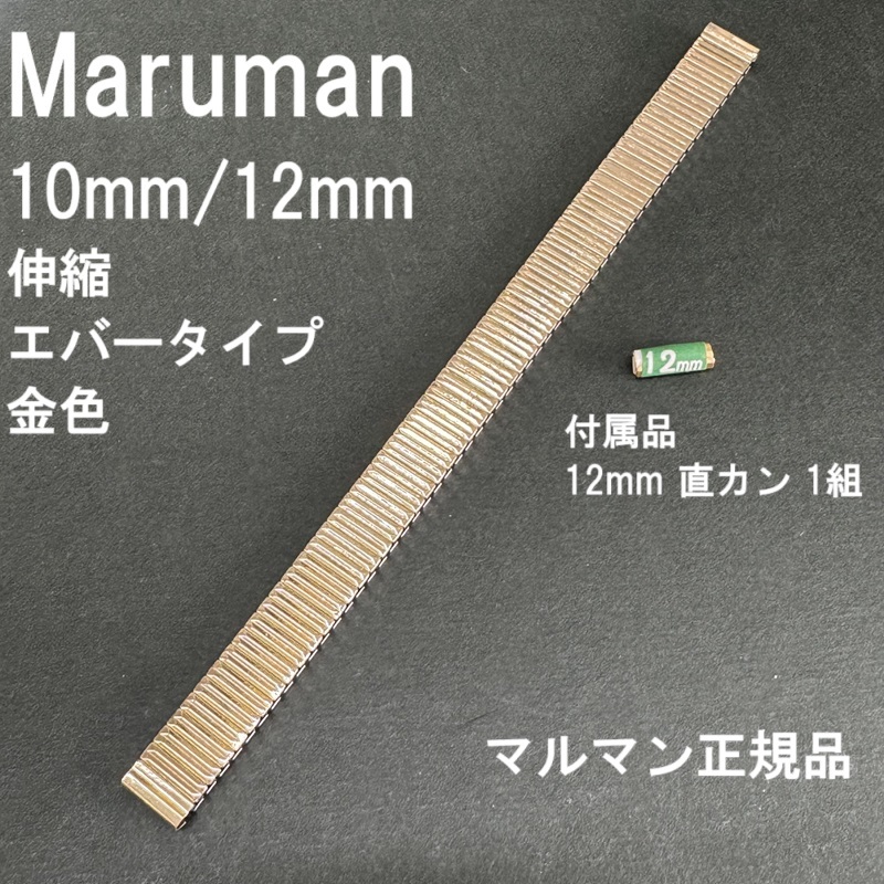 送料無料★特価 新品★Maruman 時計ベルト 10mm [12mm 直カン付属] 伸縮バンド エバータイプ 金色 ゴールド★マルマン正規品 定価4,400円