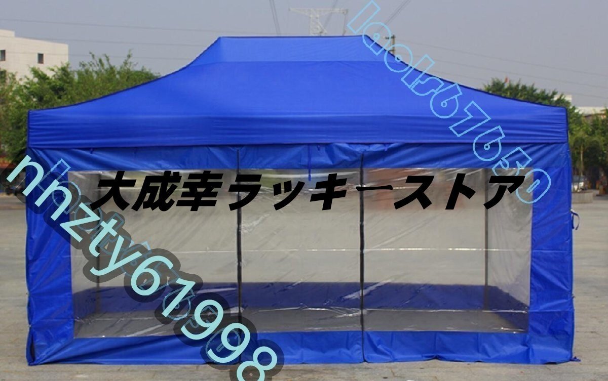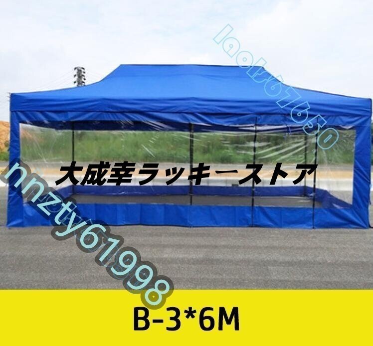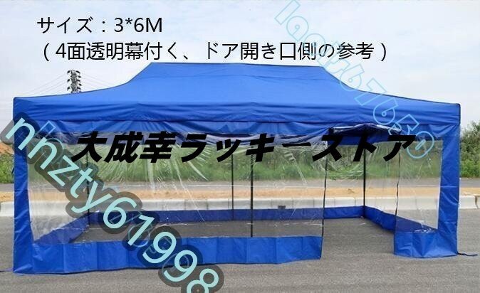 鉄フレーム 4面透明布 テント 屋外 4本足 折りたたみ サンシェード 格納式 キャノピー 4コーナーイベント祭り傘 タープテント B-3*6M