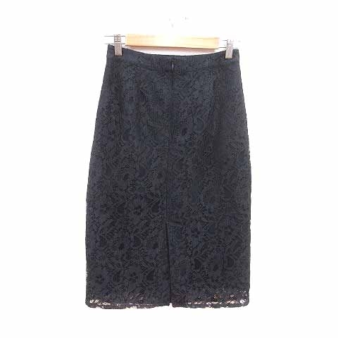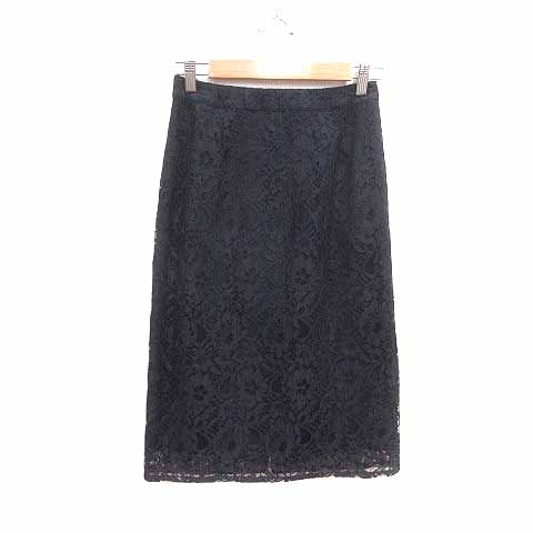 ジネス Jines タイトスカート ミモレ ロング 総レース S 紺 ネイビー /YK レディース
