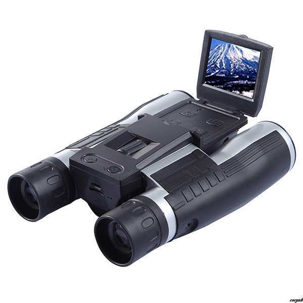 この双眼鏡カメラは、光学12倍、デジタル4倍の最大48倍まで撮影可能で、音声付きフル1080P