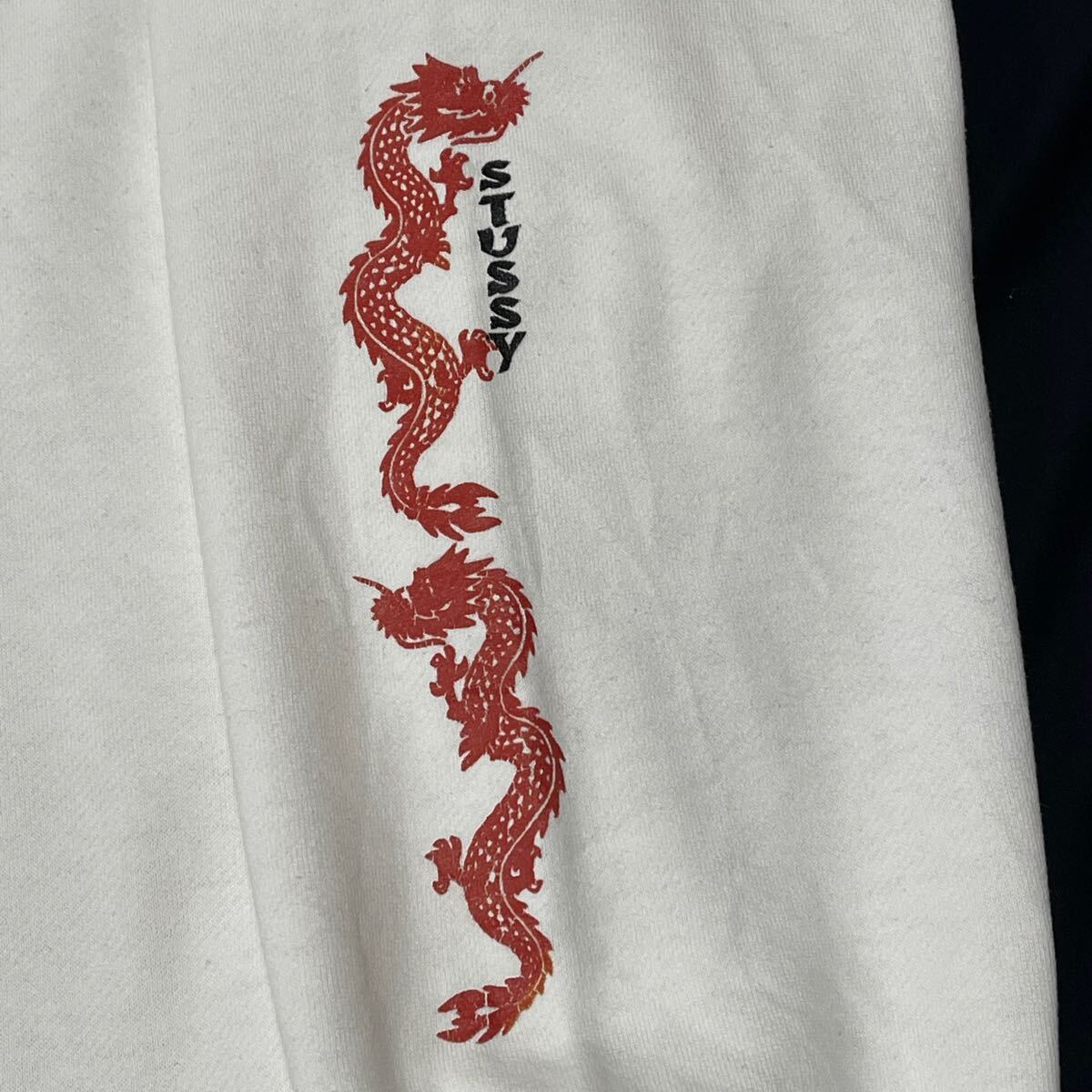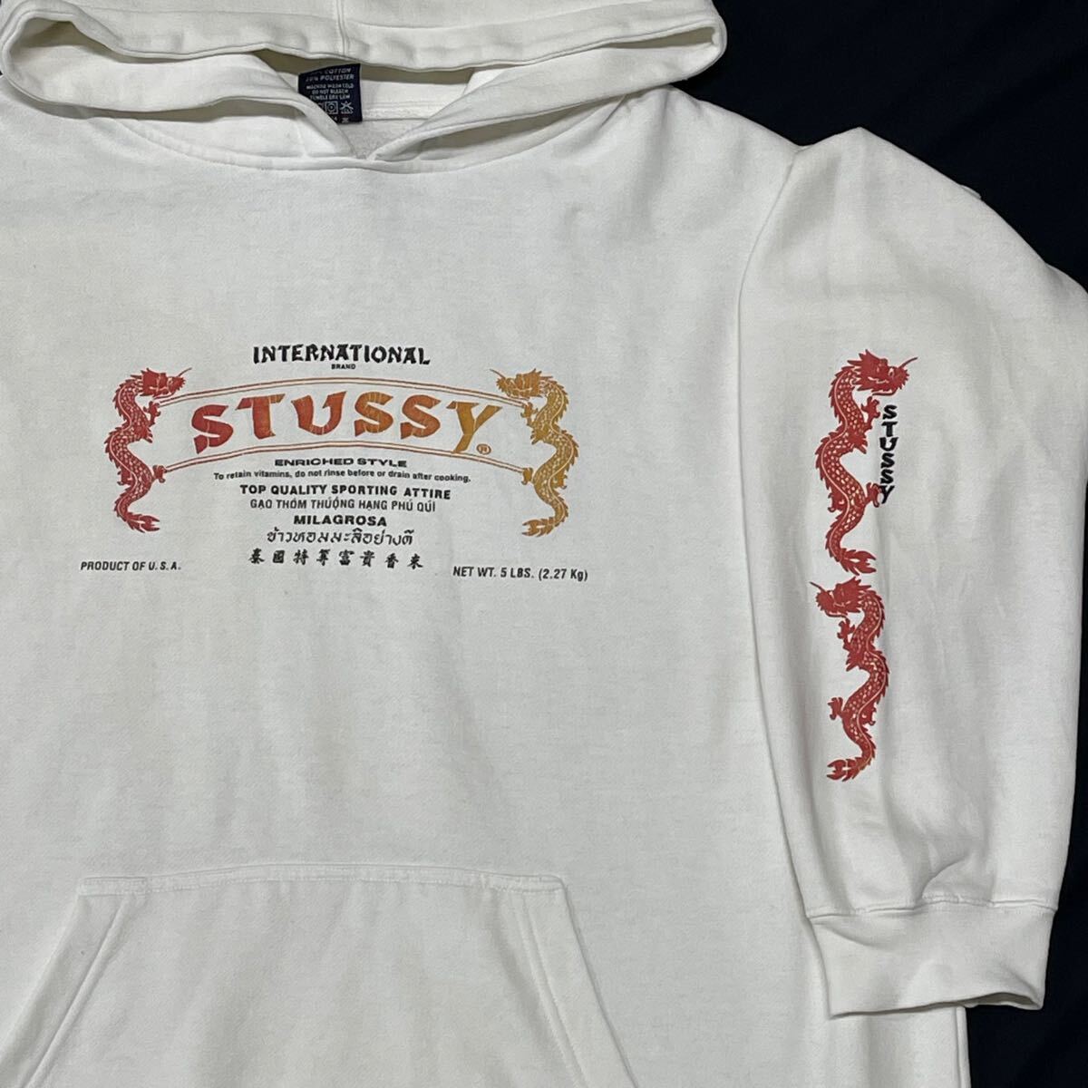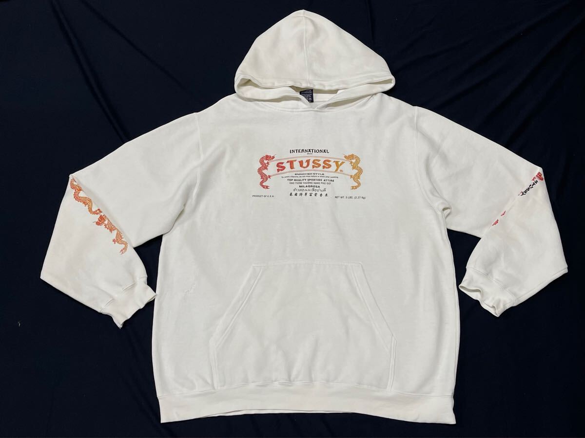 90s STUSSY パーカー USA企画 ヴィンテージ ドラゴン ステューシー  90年代 龍 アームデザイン フーディー スウェット トレーナー YL458