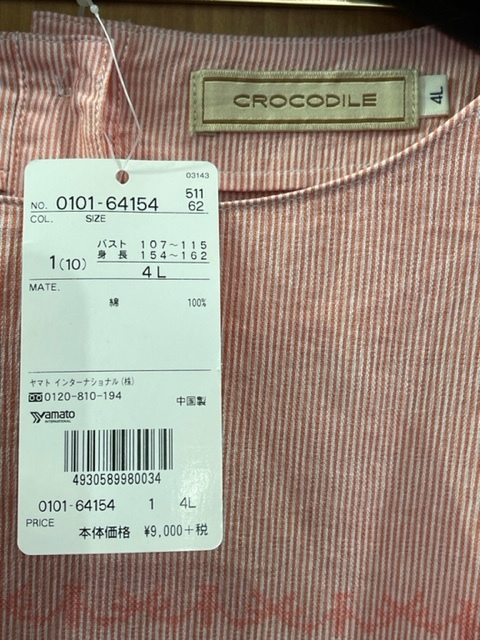 クロコダイルのレデイース4Lサイズ綿100%のトップス新品未使用品です。
