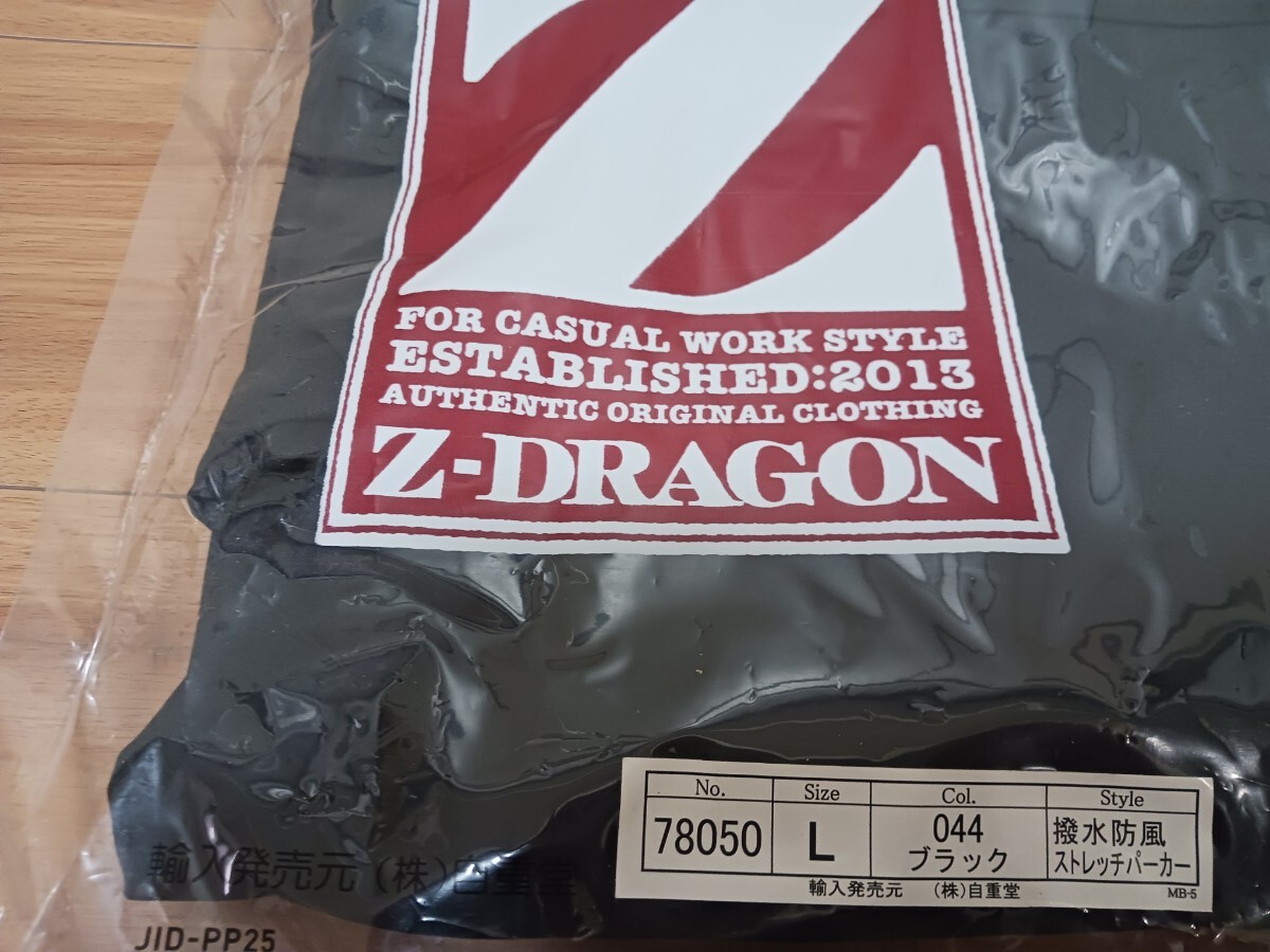 1780 Z-DRAGON撥水防風ストレッチパーカー№78050ブラックLサイズ 防寒耐久撥水ジップアップジャンパー秋冬新品黒    (バートルJawin