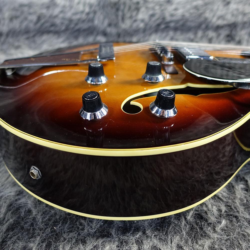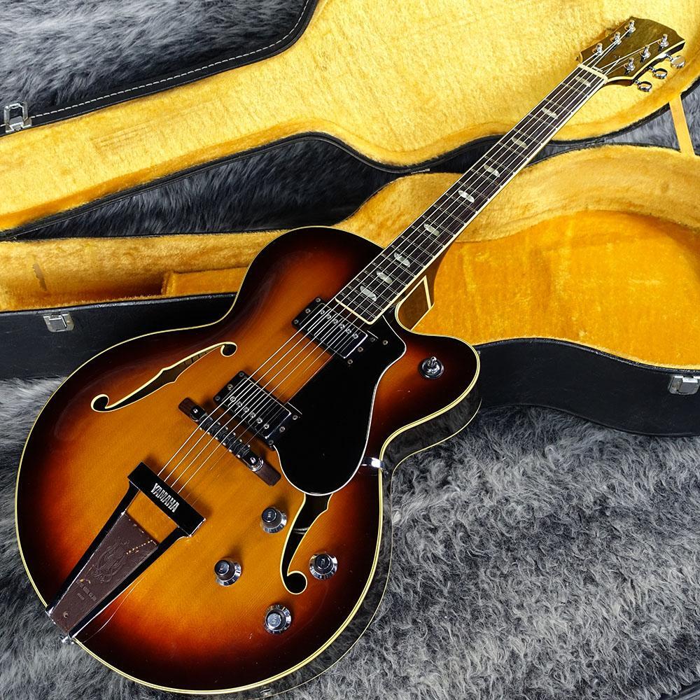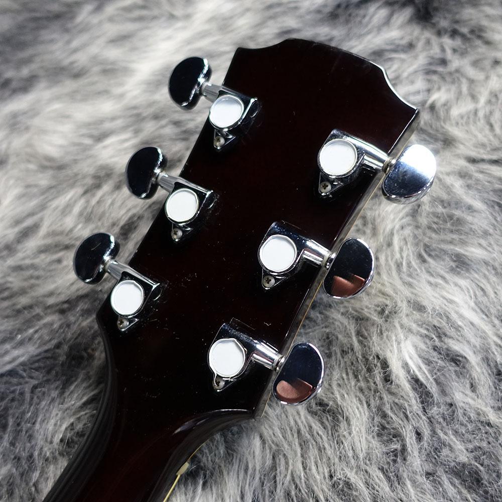 商品説明 | YAMAHA AE-12 1970年代に製造されたYAMAHAオリジナルのアコースティックジャズギター。 1967年から1997年ごろまで生産の続いたAEシリーズの初期の一本となります。 スプルーストップにメイプルのサイド&バック、メイプルネックにローズ指板とジャズらしい暖かみのある音が出せそうなスペックです。 さらにレザーのあしらわれたブリッジや角丸平行四辺形状のインレイなど近年のモデルには見られないレトロ感のあるデザインが目を引きます。 ペグは交換されているようです。 中古品につき細かな擦り傷や弾き傷はございますが大きな損傷もないコンディションです。 フレットは約8割ほどの残量となります。 非純正のハードケースが付属いたします。 |