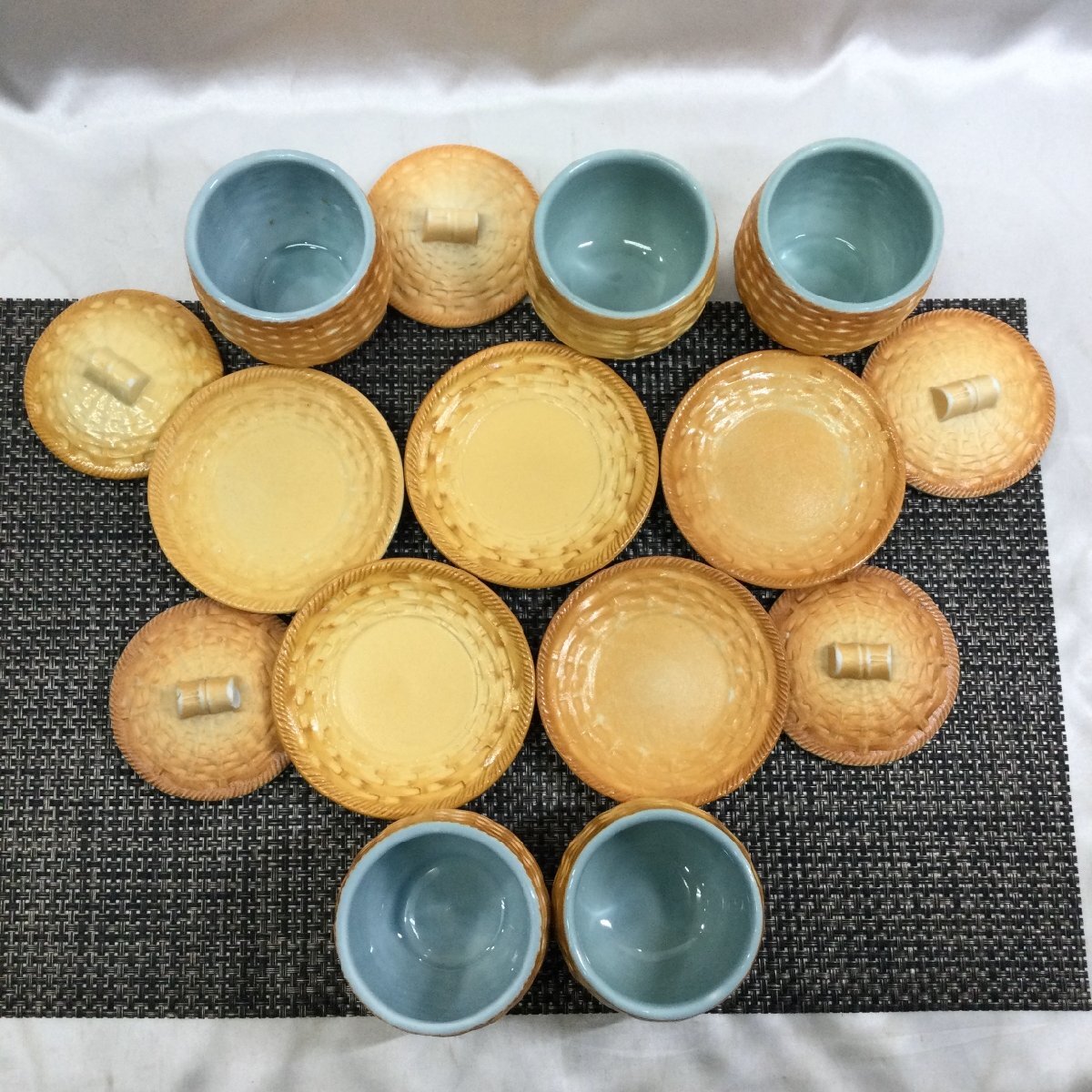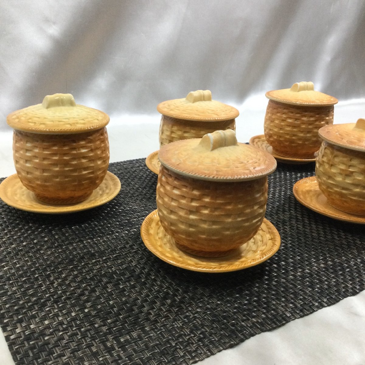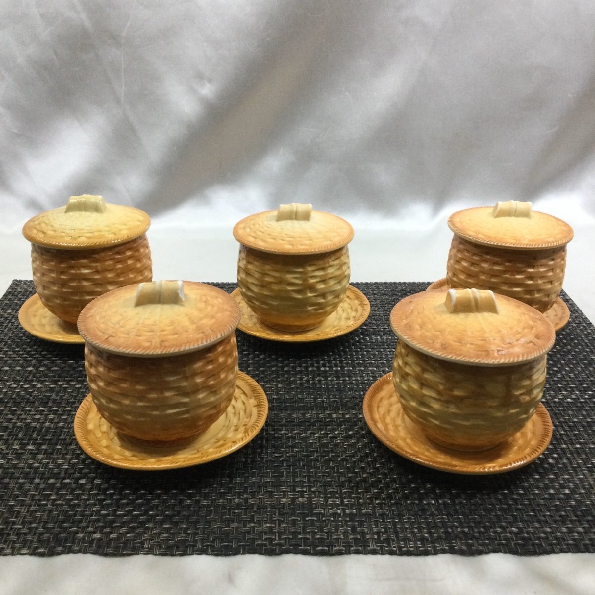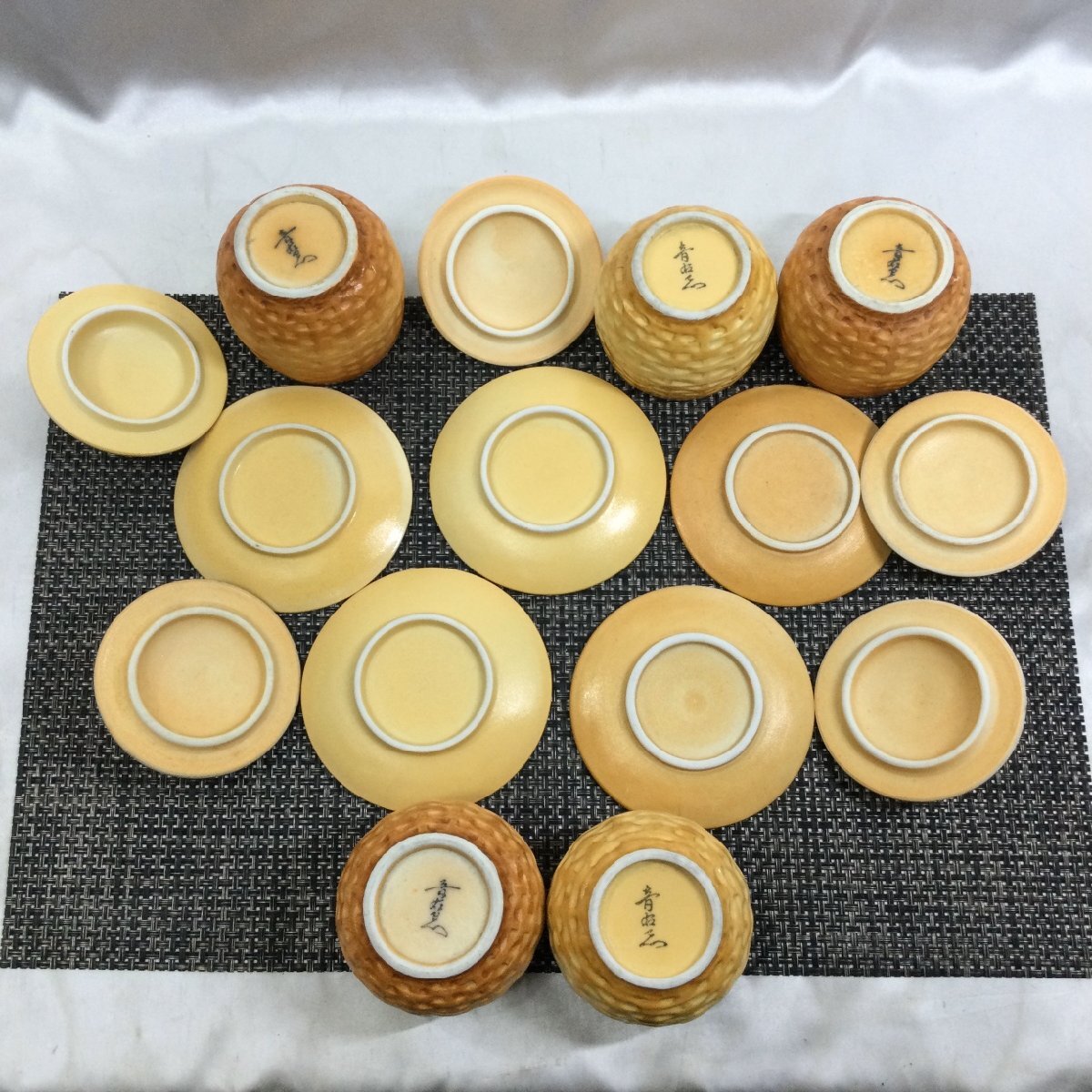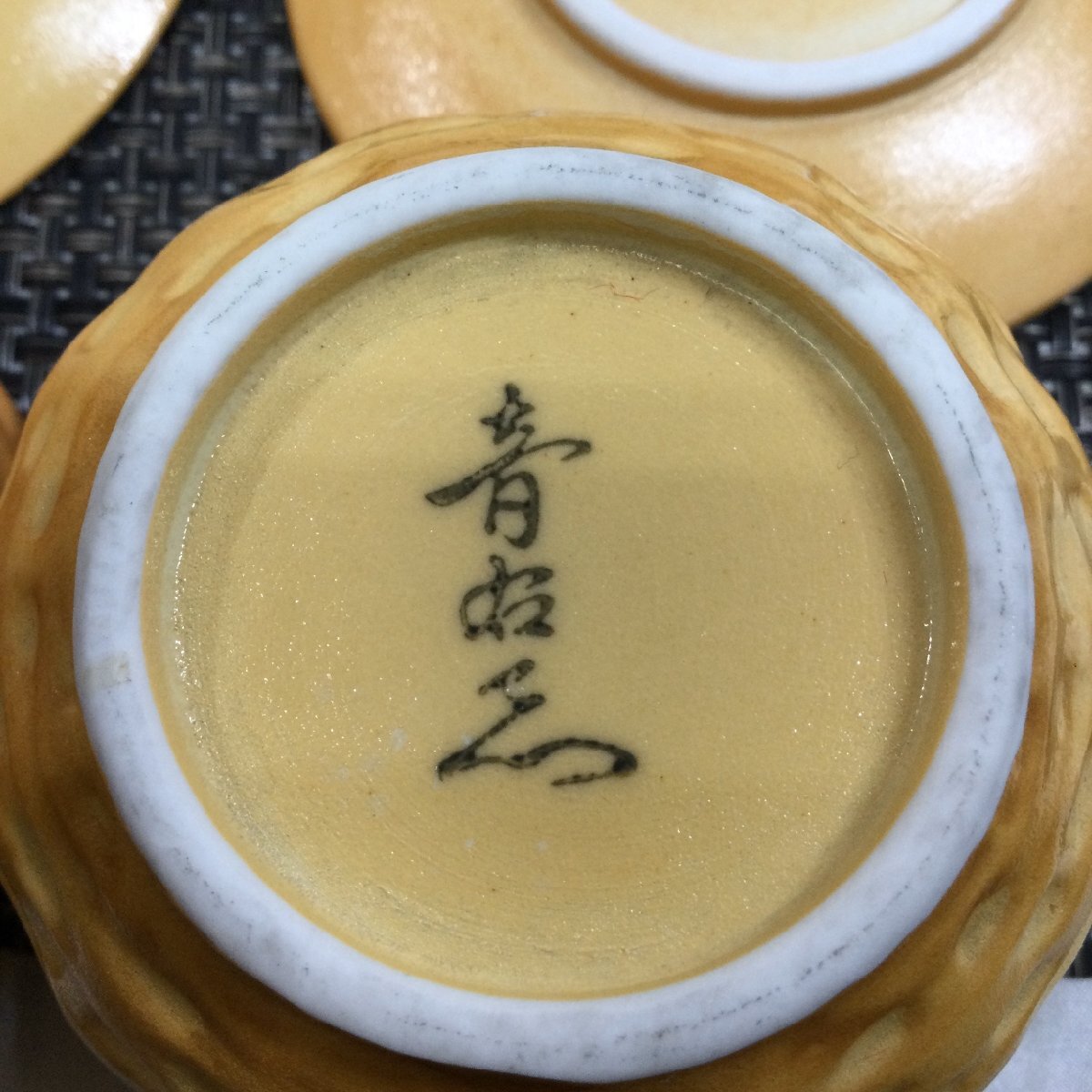 陶器 有田焼 青右エ門窯 柿型 茶器セット 5客 蓋付 皿付き 染付 秋模様 飾リ 古美術品 伝統工芸 RS01015/0000 |