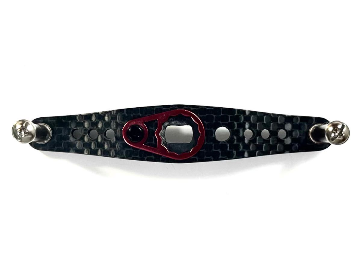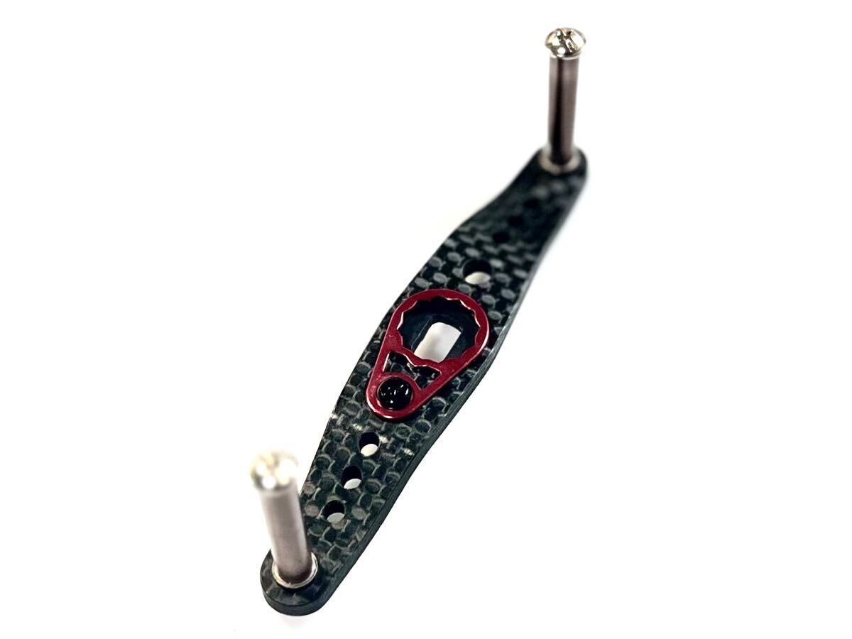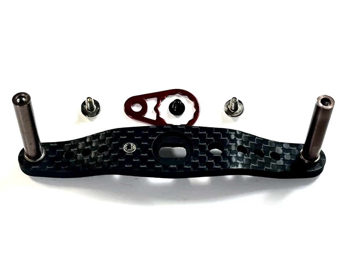 アブガルシア 初代Revo Elite IBの純正クランクハンドルでRevo初出、軸間80mmのカーボンオフセットハンドルです。リテーナー等内容物の詳細は画像からご確認ください。