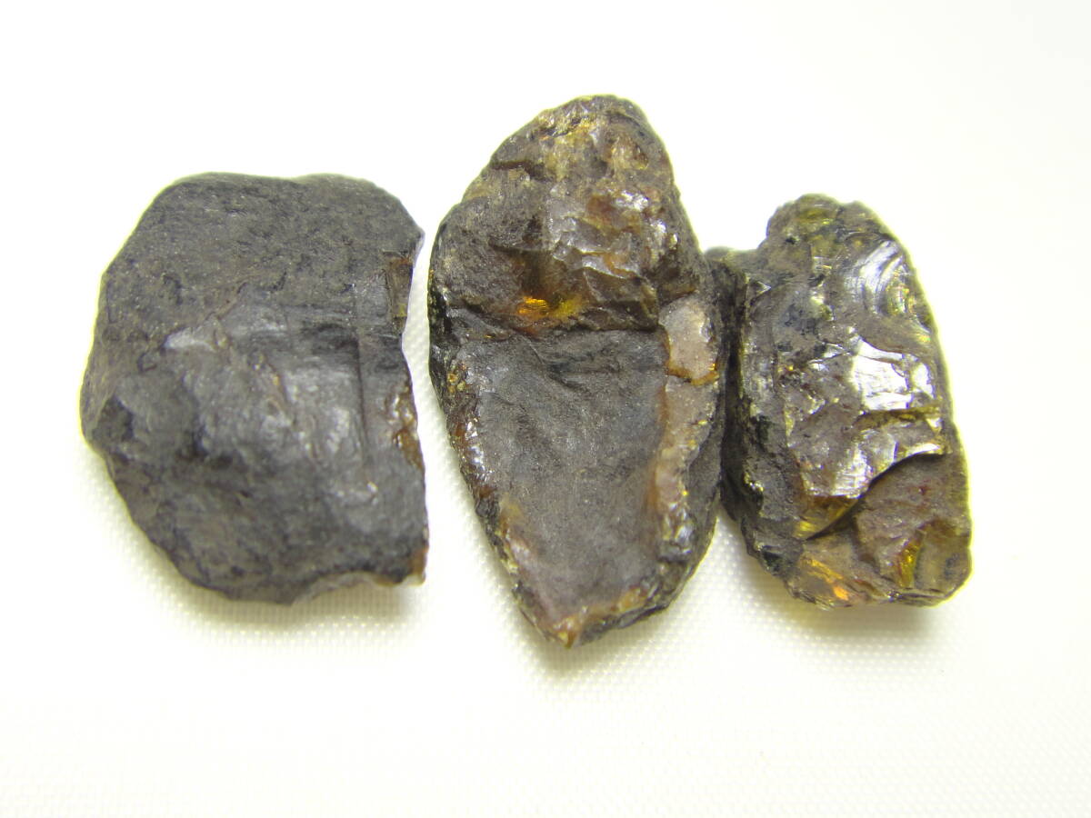 天然石 撫順産! アンバー 琥珀 原石 3個セット 標本・鑑賞用などに!