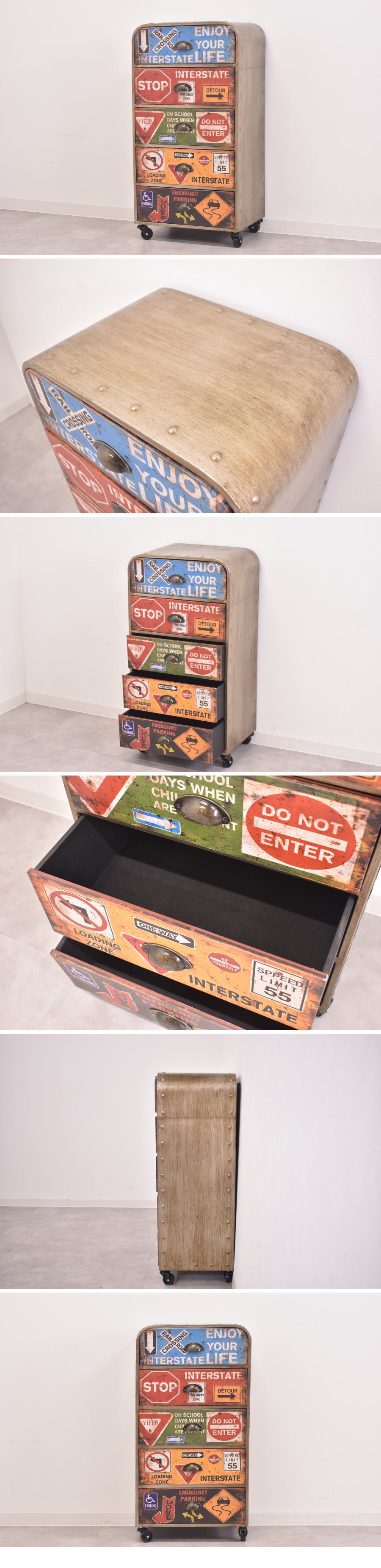 | 【限定送料無料 新品 展示処分品】アメリカン ヴィンテージ調 キャスター付き 5段 収納 チェスト |