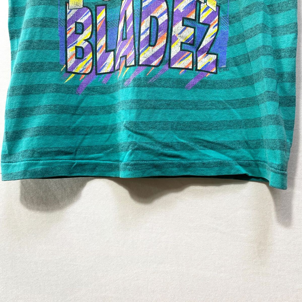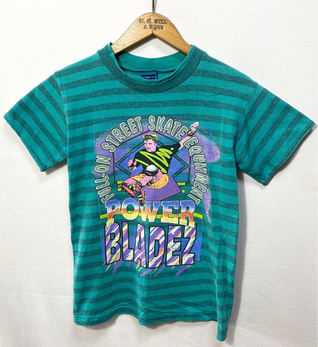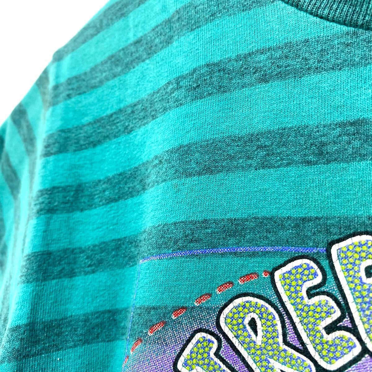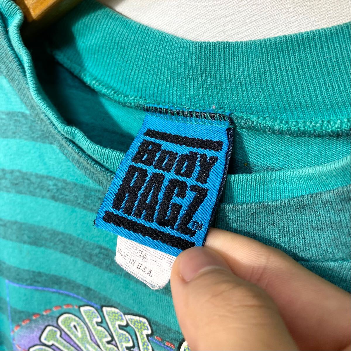 ■ 子供用 ビンテージ USA製 Body RAGZ ボーダー柄 イラスト シングルステッチ Tシャツ ターコイズ アメカジ 80s 90s ■