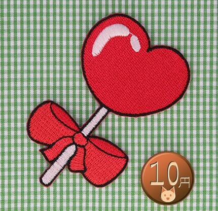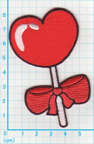 アイロンワッペン/刺繍/アップリケ/ハートロリポップキャンディ赤/アイロンワッペン/刺繍/アップリケケ/お菓子/スイーツ