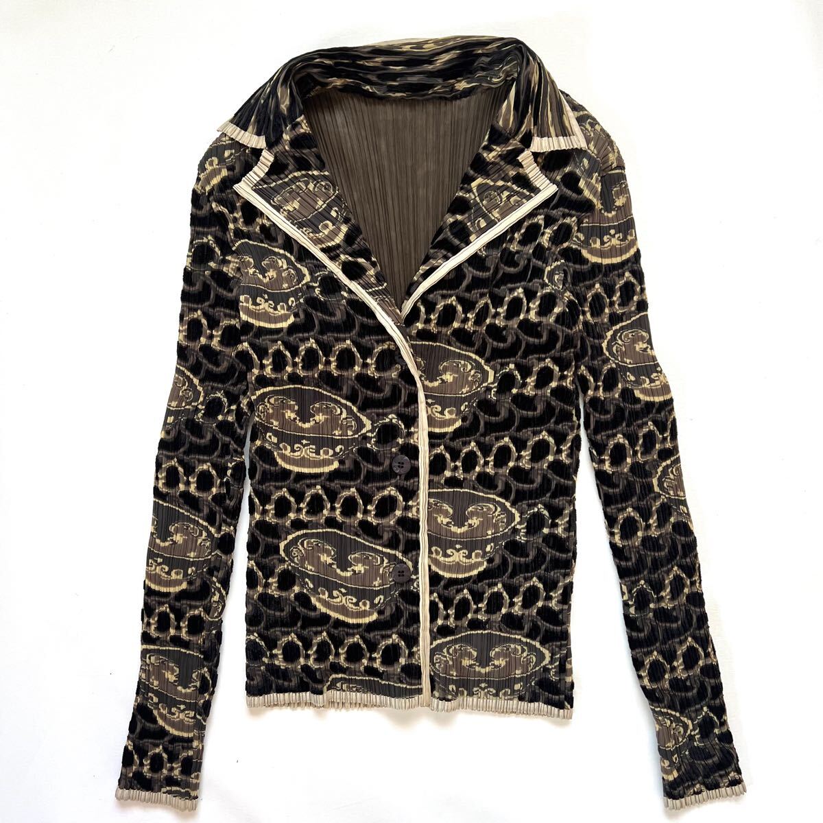 《デザイン》ジャケット シワ加工 総柄 プリーツプリーズ レディース ボタン