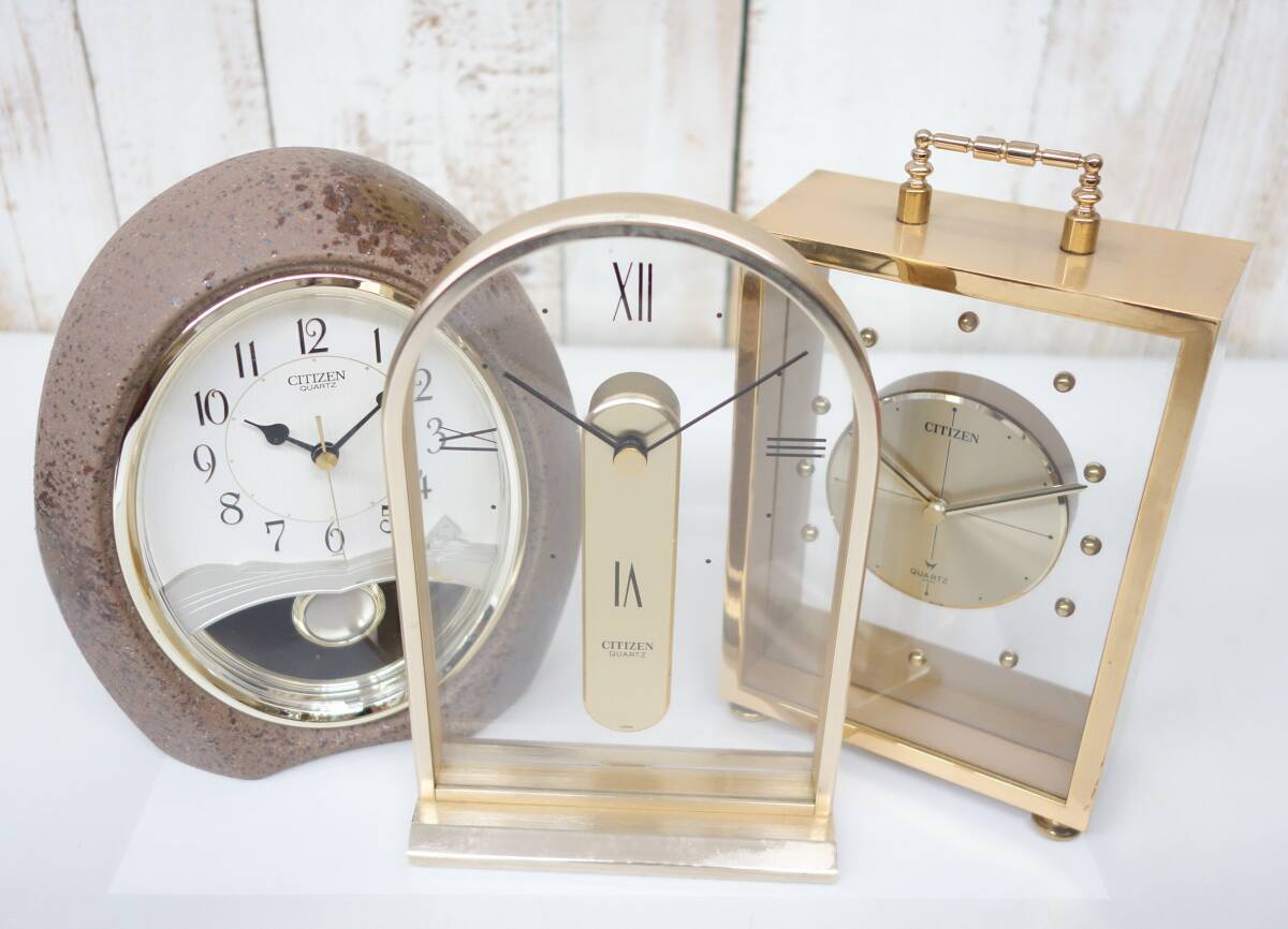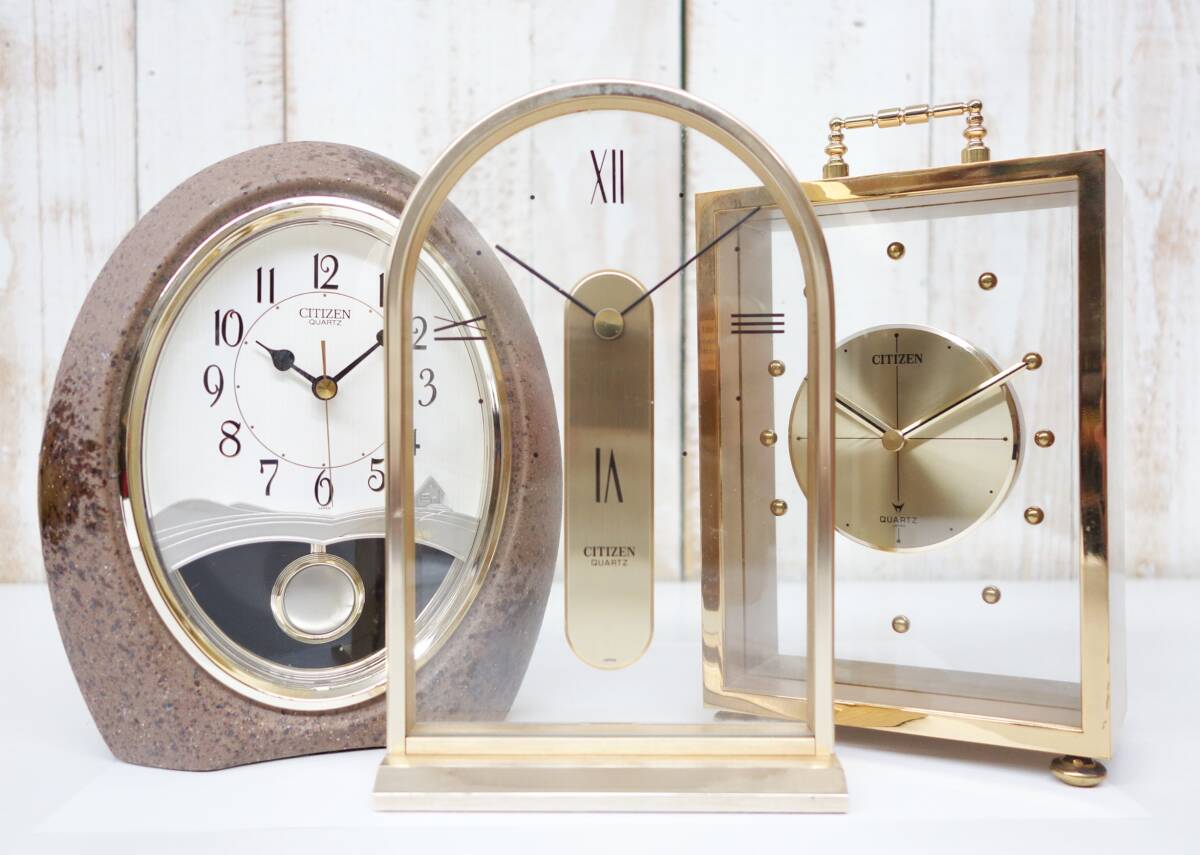 *レトロコレクション 当時物 *CITIZEN シチズン リズム時計工業株式会社 *人気豪華置時計 三点セット *4RP775 陶香村 振り子 *4RG900A (向かって右) *4RG423 (中央) *クォーツ式 電池 |