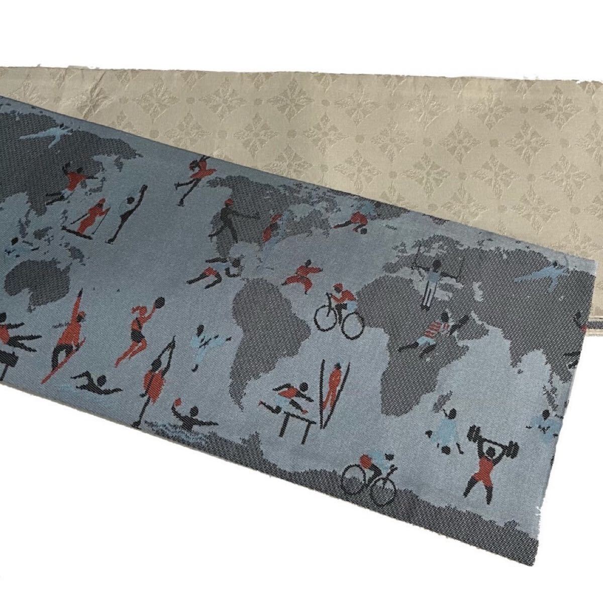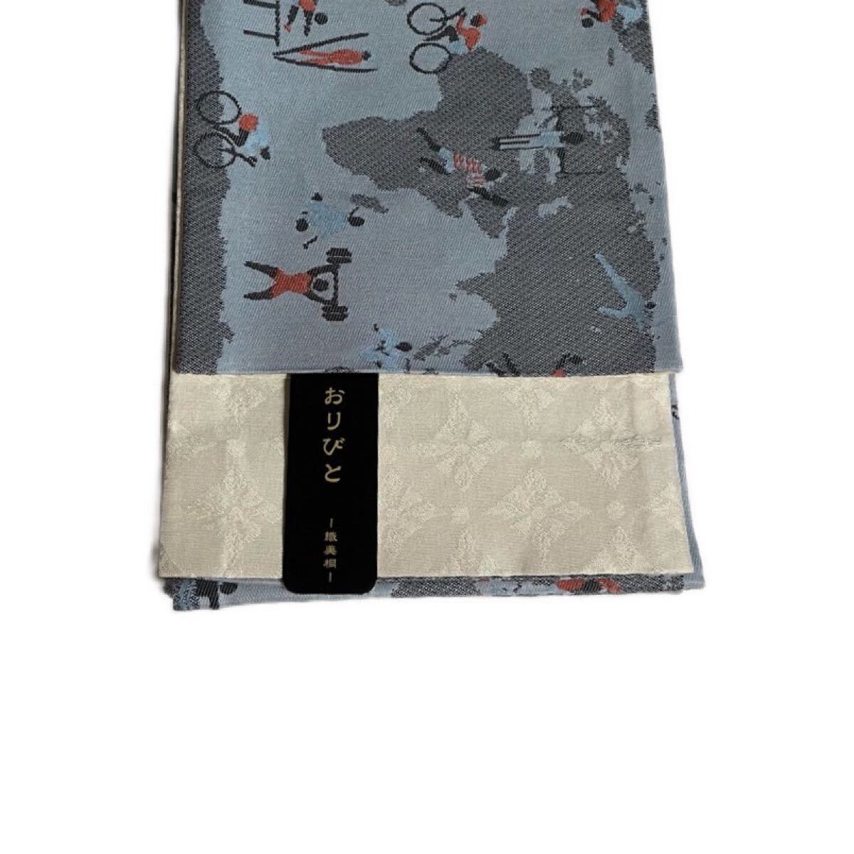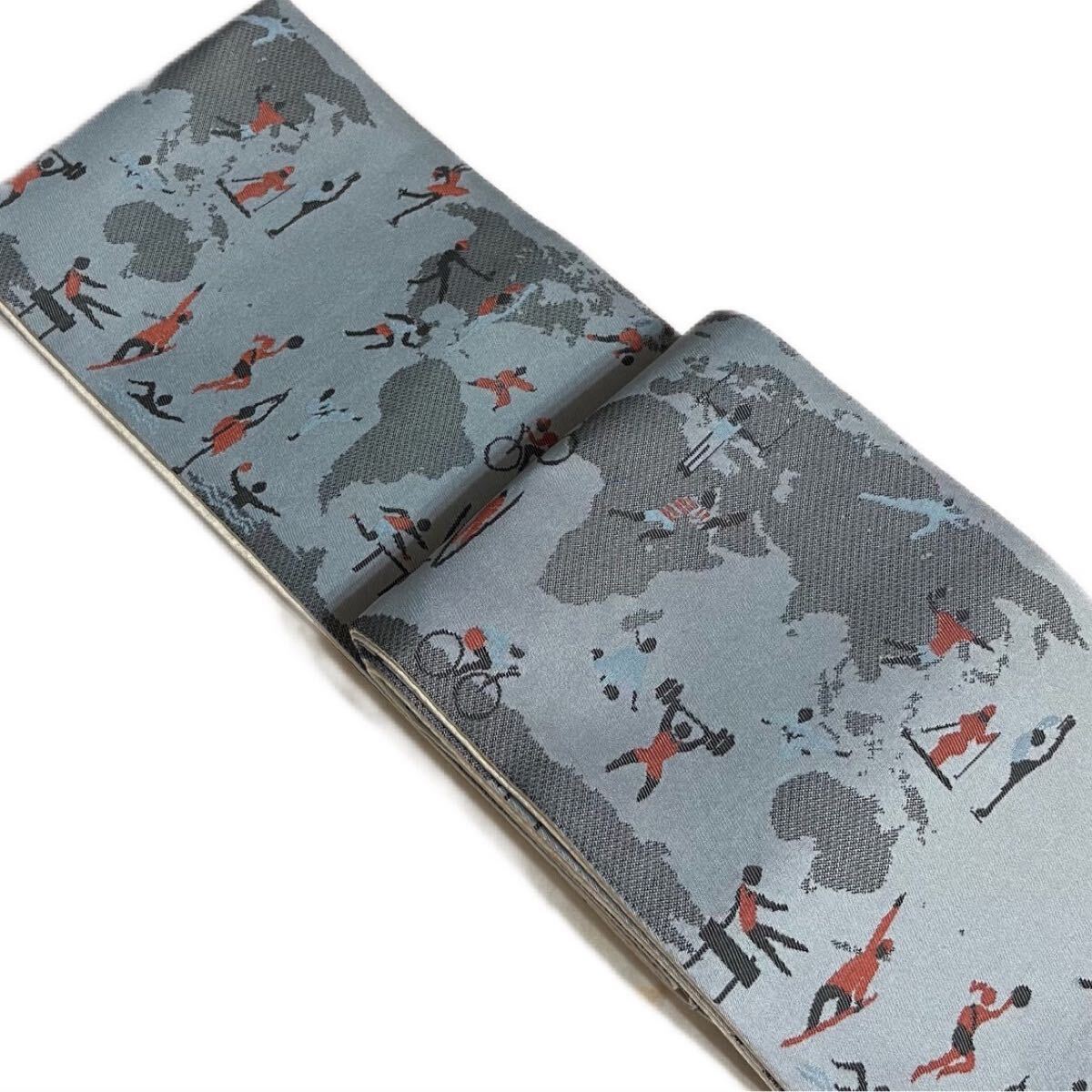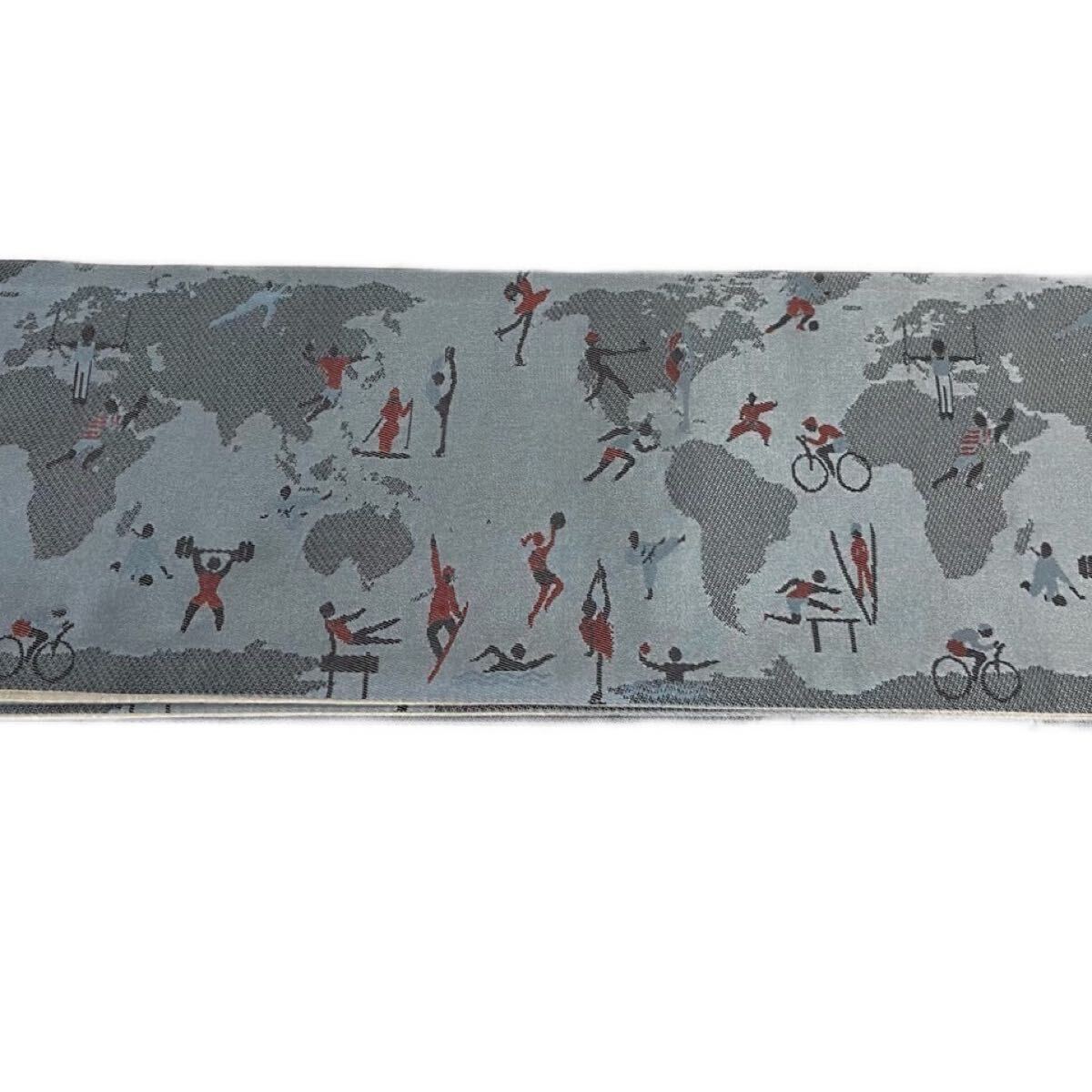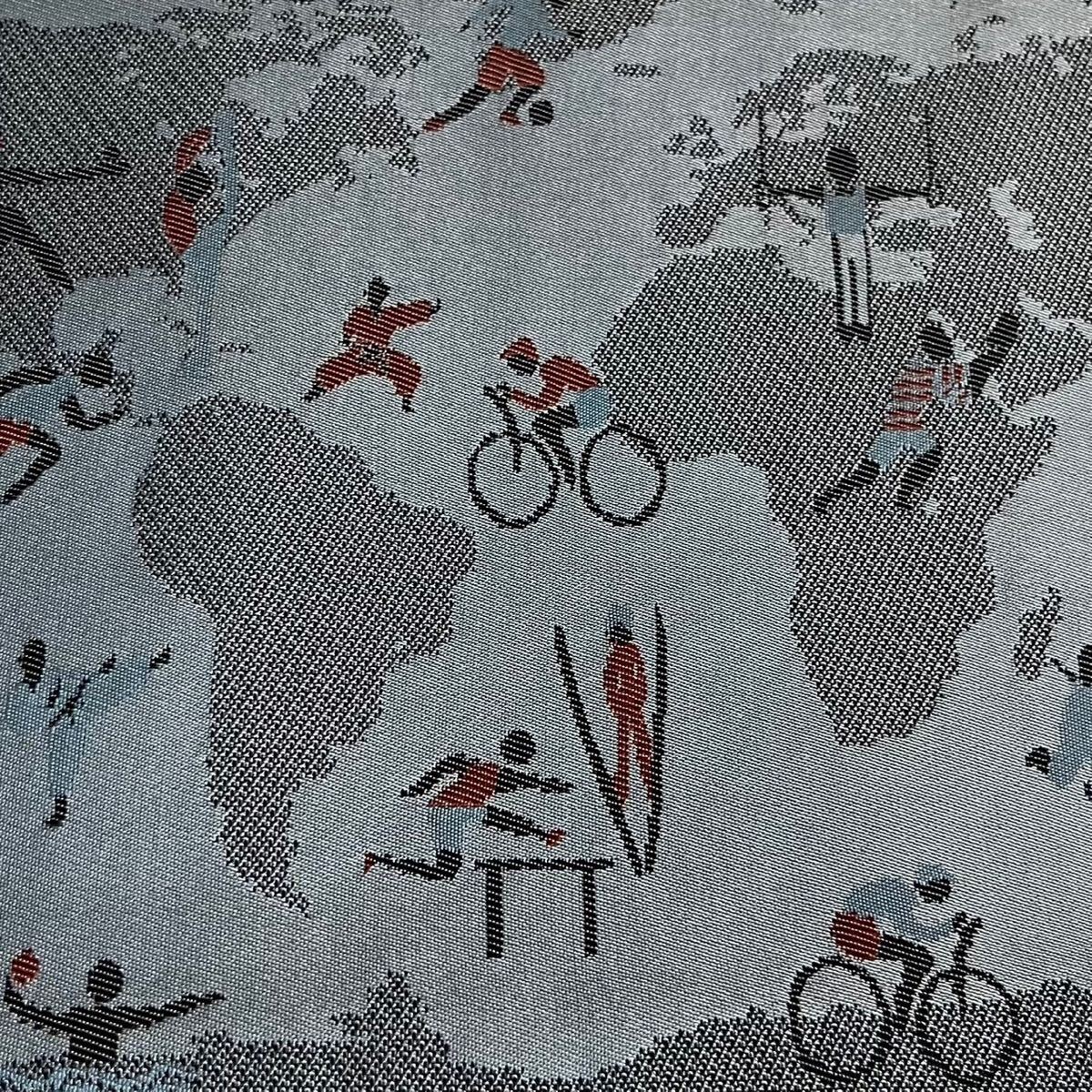 薄水色地に世界地図と様々なスポーツをする人々が描かれた個性的なデザイン!