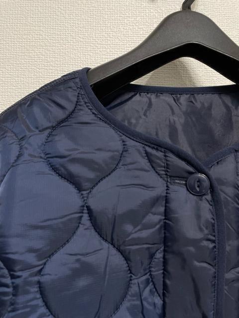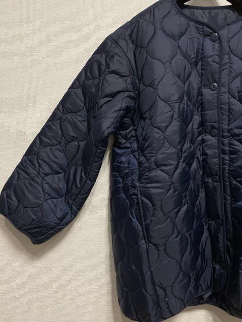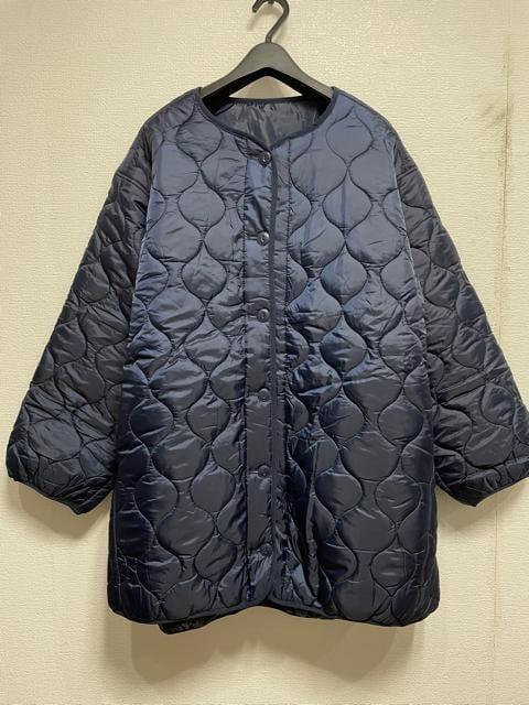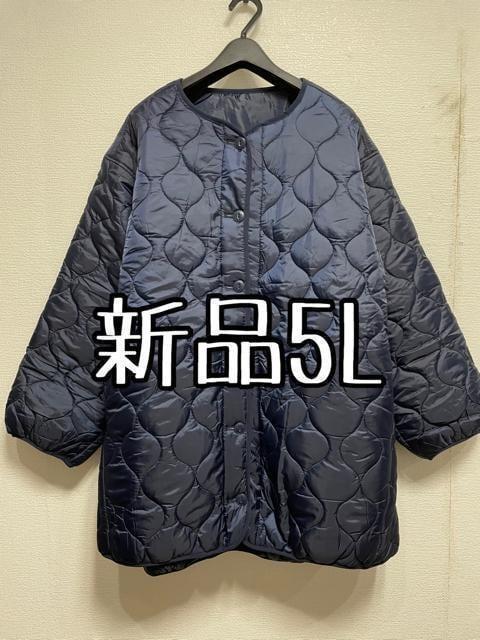 新品☆5L♪紺系♪ナチュラルおしゃれノーカラーキルトコート☆u475