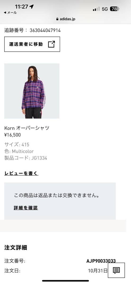 新品 未使用 adidas x Korn Overshirt "Multicolor"アディダス x コーン オーバーシャツ 長袖シャツ XLサイズ