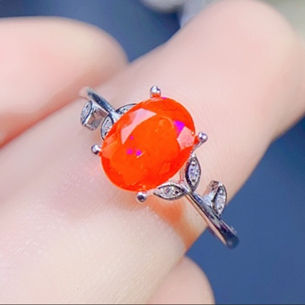 天然火のオパールリング、女性用、925シルバー、18k金メッキ、パーティーギフト