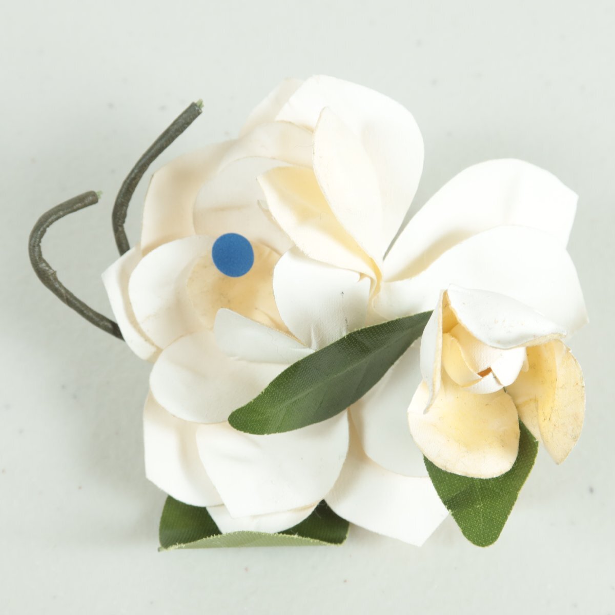 インゲボルグ?ピンクハウス系★コサージュ ブローチ 素敵なカメリアモチーフ♪茎付き 白系 k3111