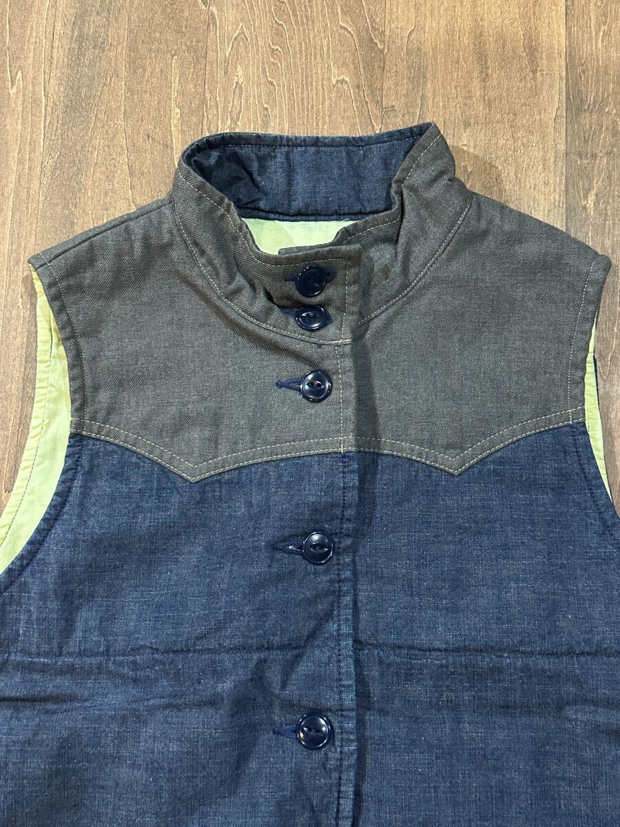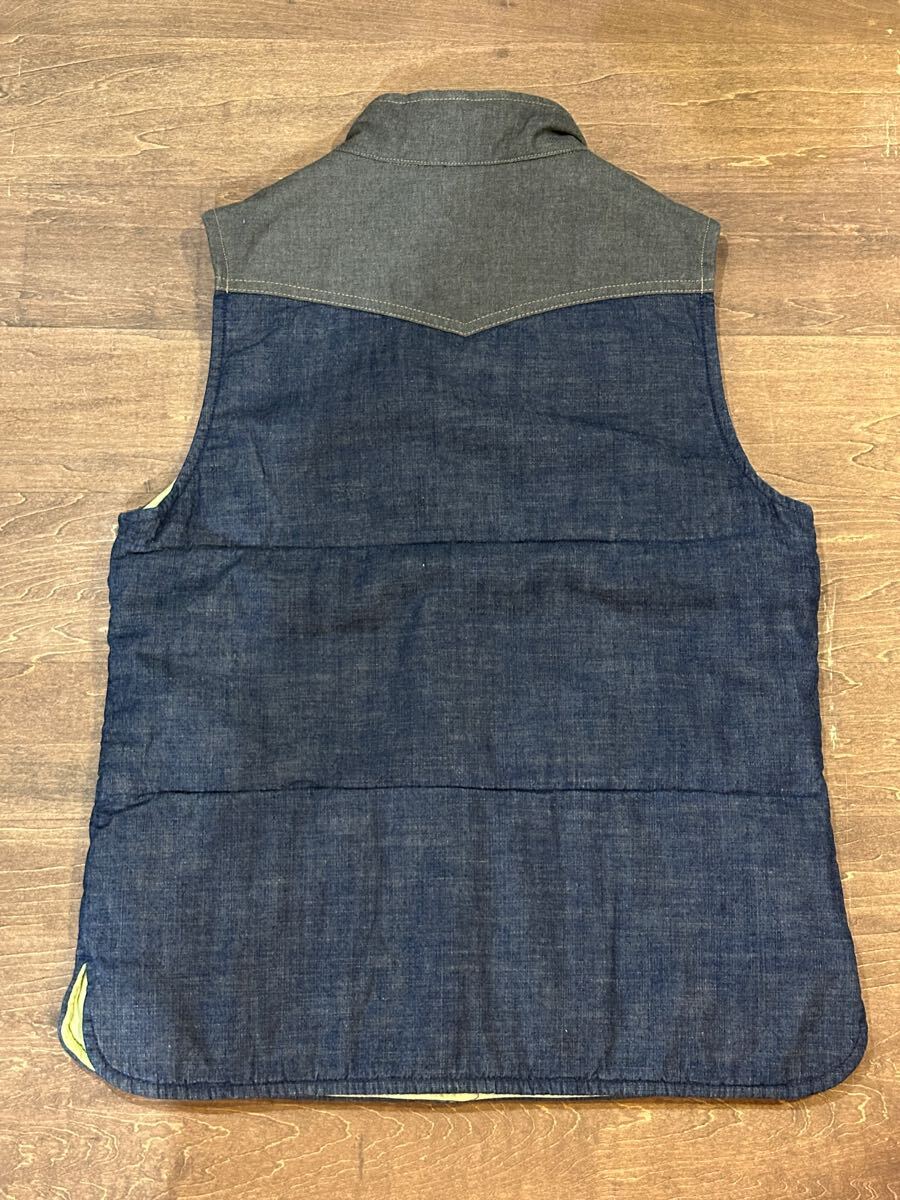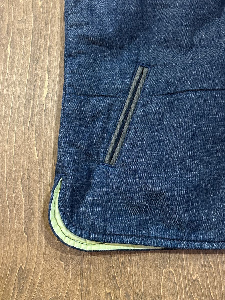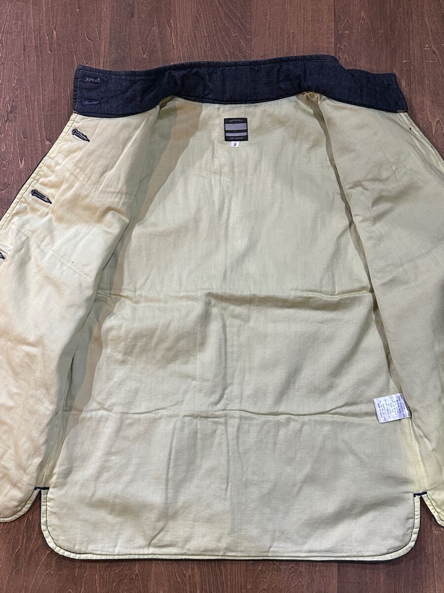 身頃生地のシャンブレーは特濃染め&高密度で織り上げている為、8ozでもコシがあり見た目にはデニム のような重厚感、ヨーク部分には若干のネップ感のあ るT/C素材のサージを採用。シルエットは中綿の量を各部位によって調整し全体的にスッキリとしています。