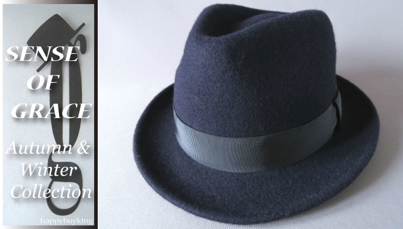 graceグレース★フェルトウール中折れハット【紺】新品 サイズ調節可能 男女兼用 クラシック センスオブグレース