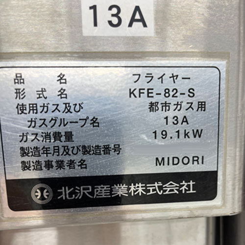 【業界最長1年保証】ガス二槽フライヤー 北沢産業 KFE-80-S 都市ガス 業務用 中古/送料別途見積