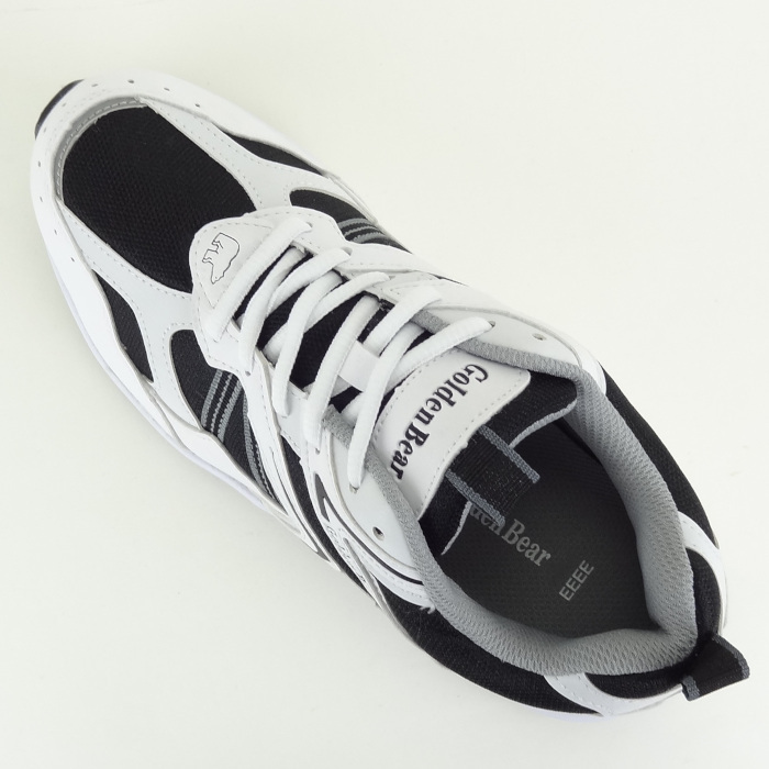 ブランド名: Golden Bear ゴールデンベア 品番:GB-264 色:ホワイト/ブラック 白 黒 靴の幅:4E EEEE フォーイー サイズ:26.0cm 素材: アッパー/合成皮革+合成繊維 ソール/合成底 生産国:中国 シューズ、アッパーのメッシュ部分に撥水加工をしております。(防水ではありません。素材の縫い目などから水が侵入する場合があります) 紳士用、ゴールデンベアの軽量ランニングシューズです。学生さんのスクールシューズや普段履きから施設や病院なお仕事用、ランニング、ウォーキングなどさまざまな用途にご使用いただけます。 息子さん、お父さん、おじいさんへのお気軽なプレゼントや贈り物などにもおすすめです! | ||